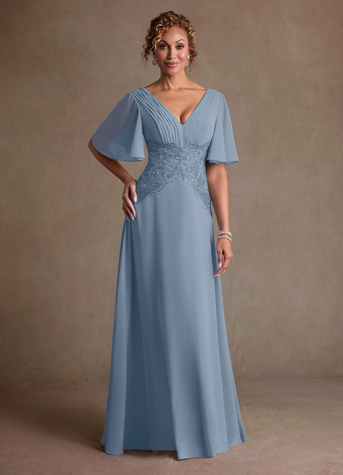 Linia A Koronka Szyfon Długość podłogi Sukienka