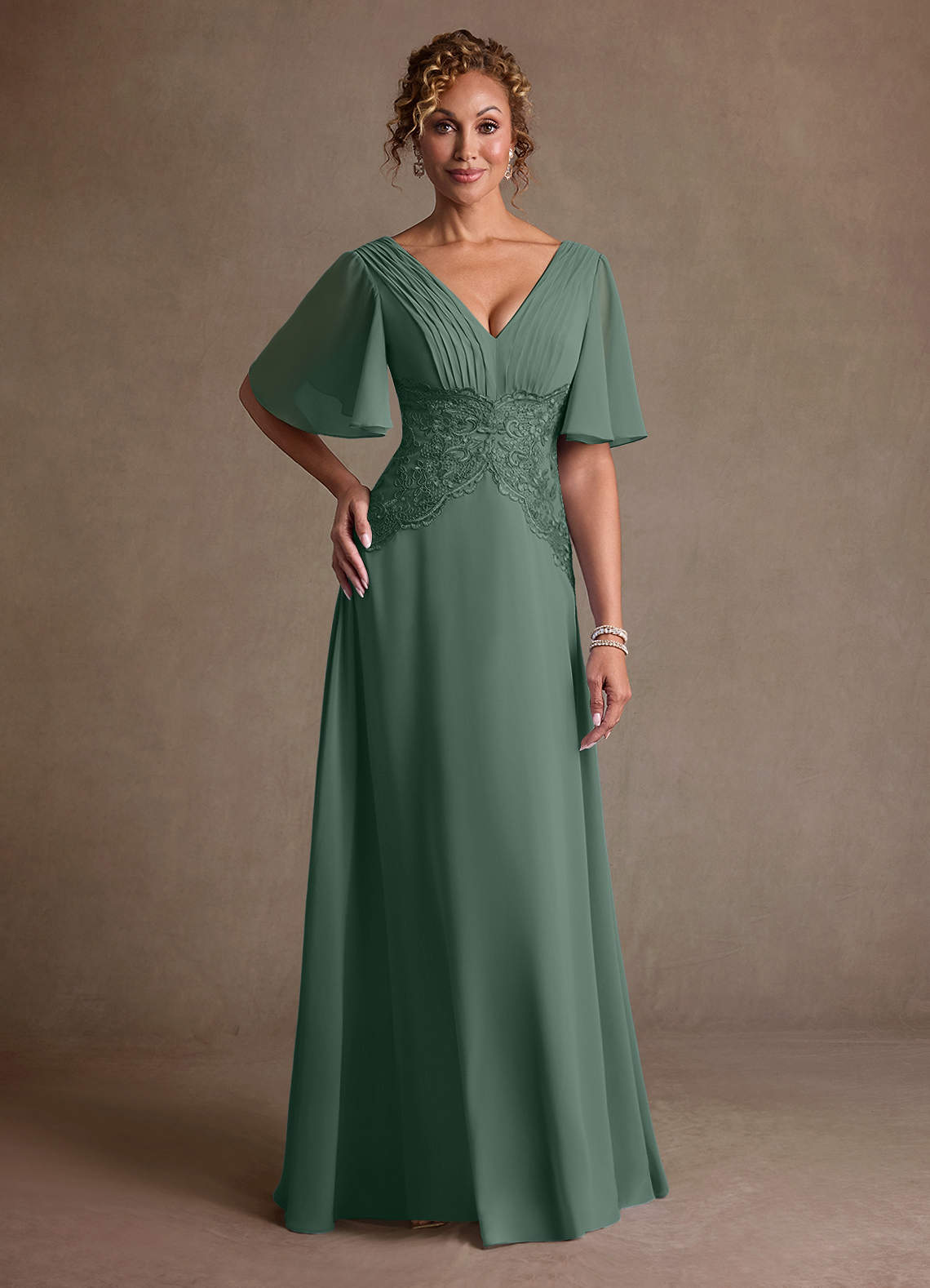 Linia A Koronka Szyfon Długość podłogi Sukienka