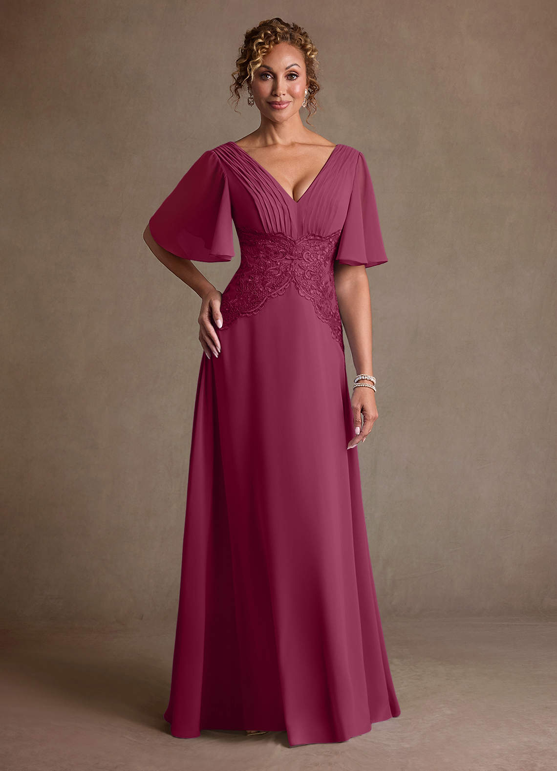 Linia A Koronka Szyfon Długość podłogi Sukienka