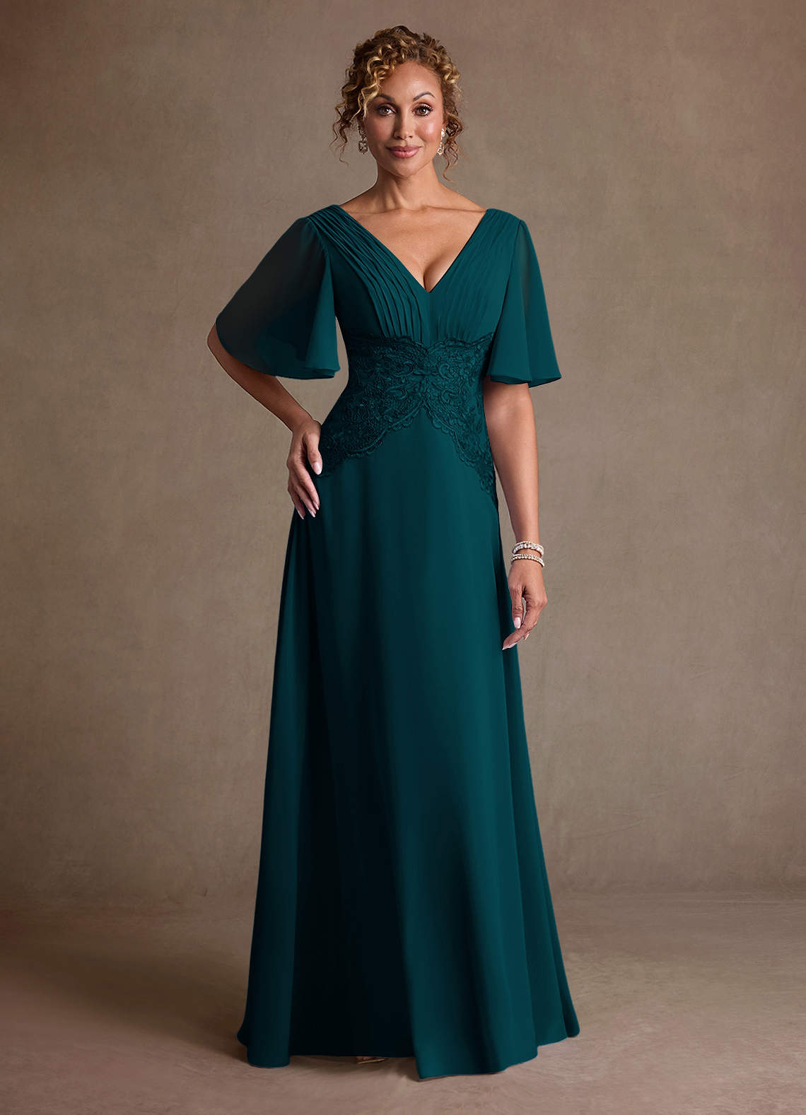 Linia A Koronka Szyfon Długość podłogi Sukienka
