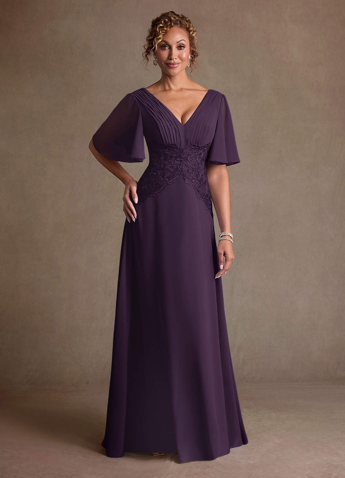 Linia A Koronka Szyfon Długość podłogi Sukienka