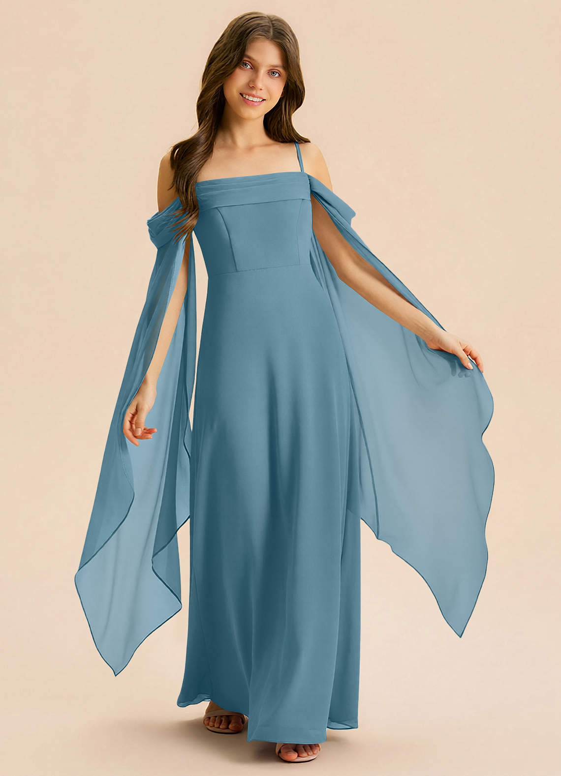 Linia A Pofałdowany Szyfon Długość podłogi Młodsza druhna Sukienka