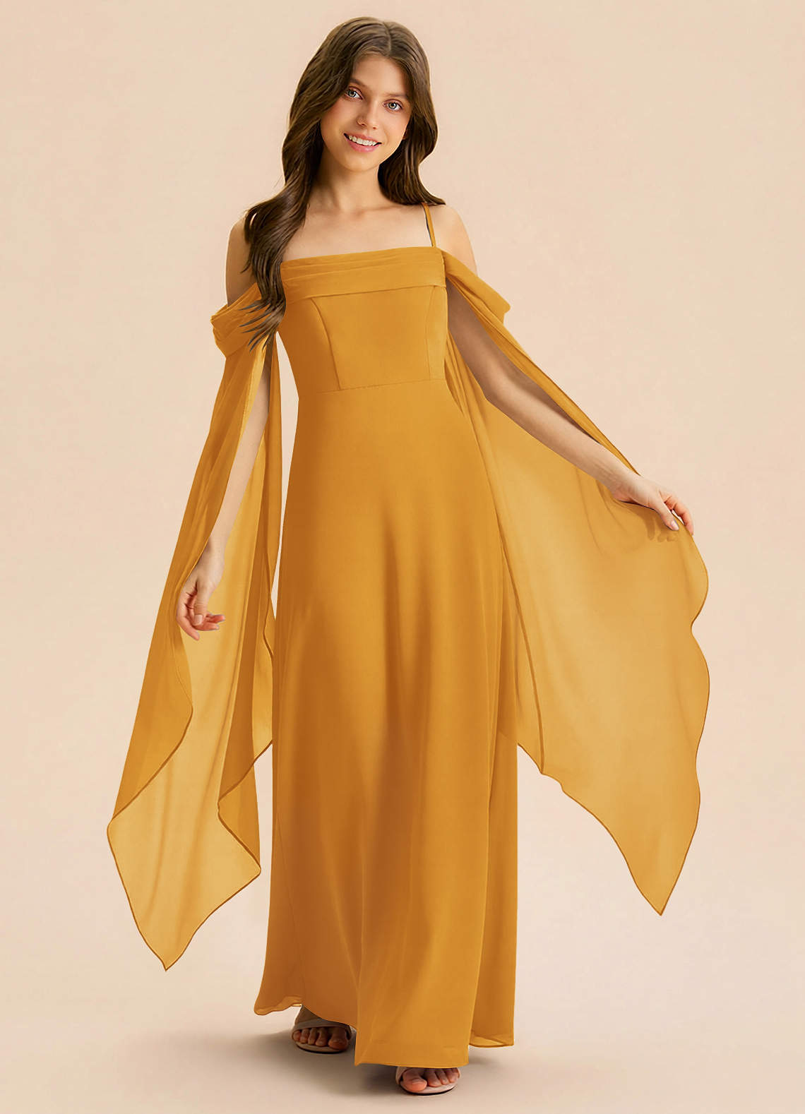 Linia A Pofałdowany Szyfon Długość podłogi Młodsza druhna Sukienka