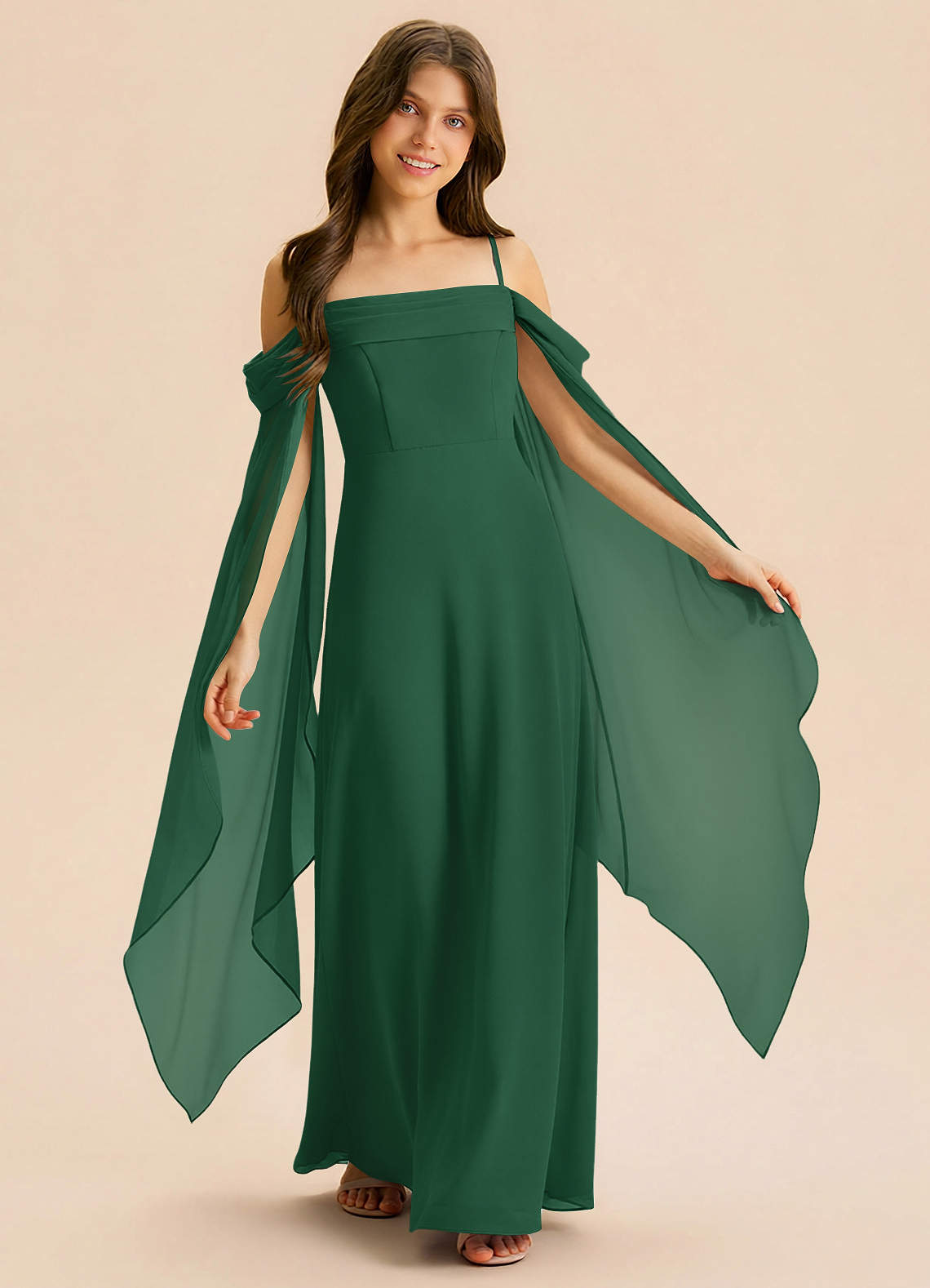 Linia A Pofałdowany Szyfon Długość podłogi Młodsza druhna Sukienka