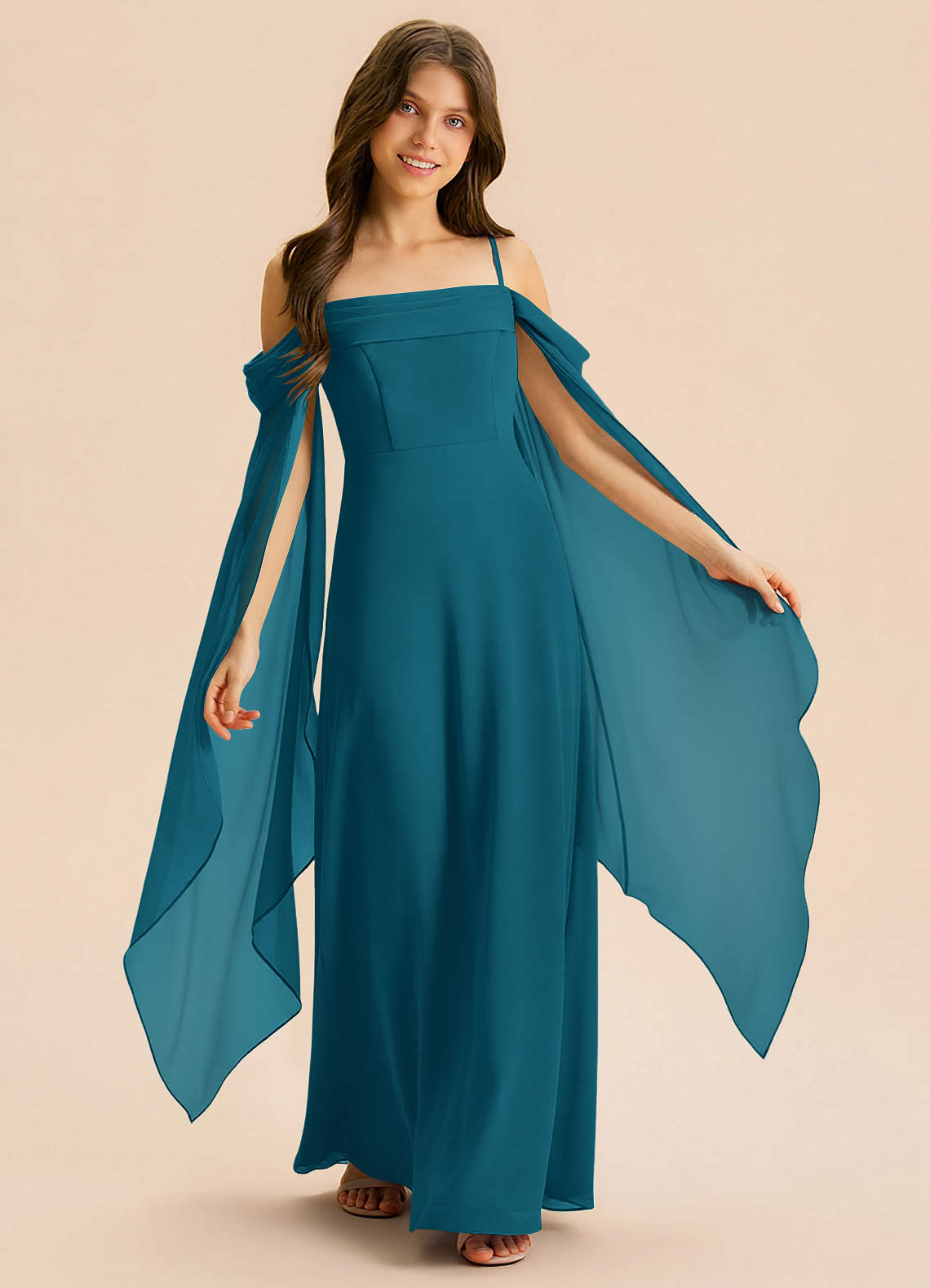 Linia A Pofałdowany Szyfon Długość podłogi Młodsza druhna Sukienka