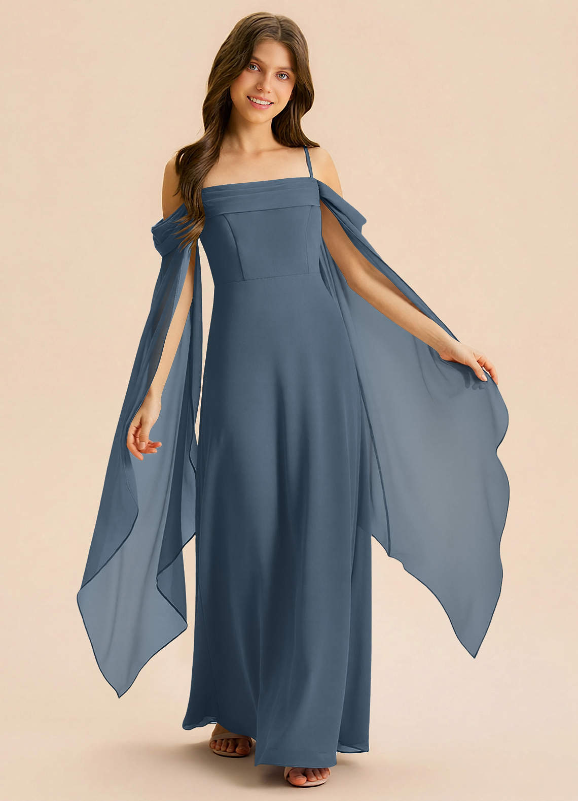 Linia A Pofałdowany Szyfon Długość podłogi Młodsza druhna Sukienka