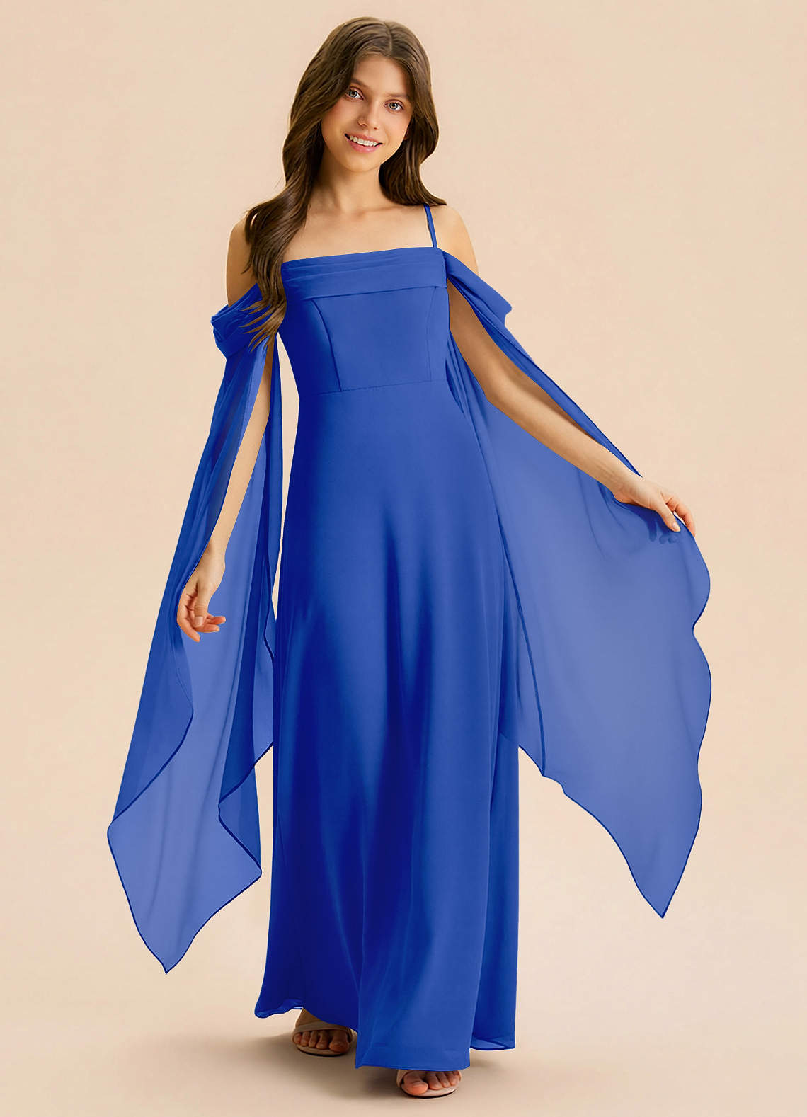 Linia A Pofałdowany Szyfon Długość podłogi Młodsza druhna Sukienka
