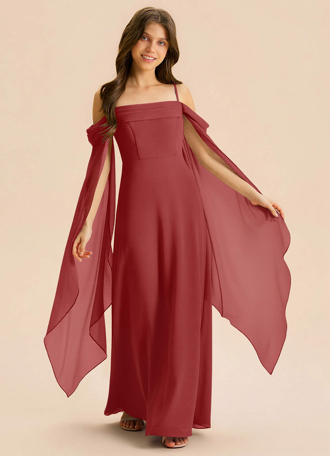 Linia A Pofałdowany Szyfon Długość podłogi Młodsza druhna Sukienka