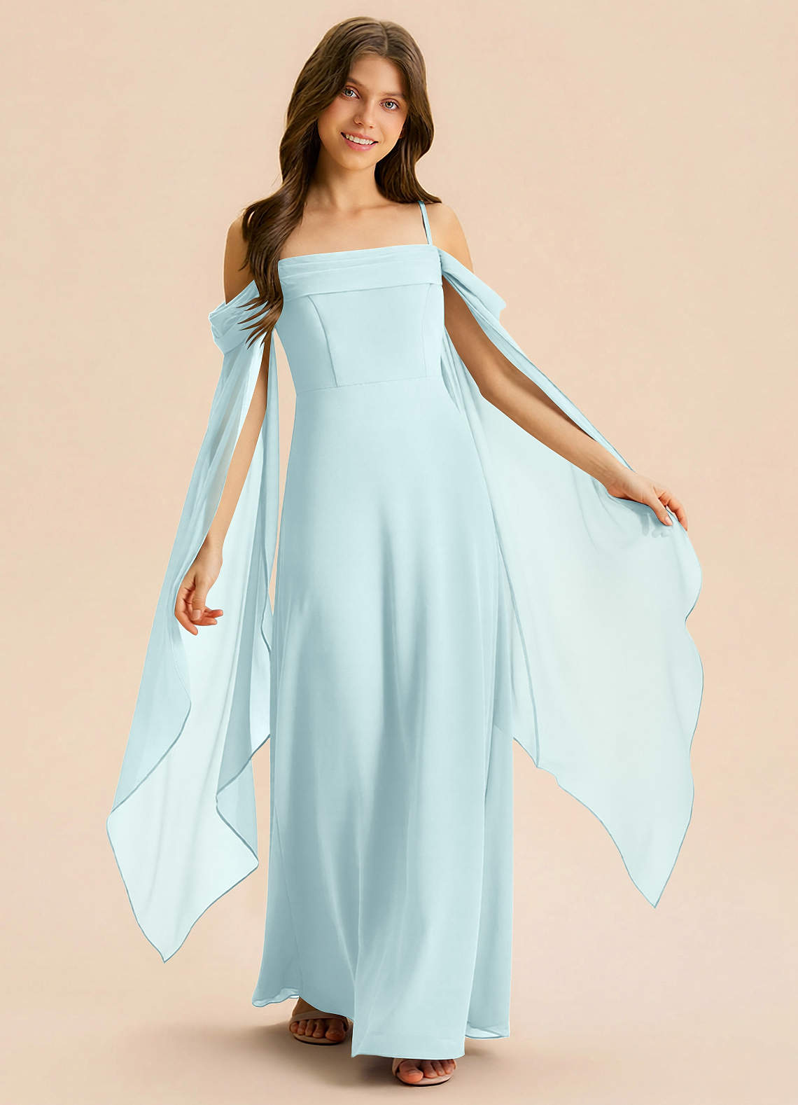 Linia A Pofałdowany Szyfon Długość podłogi Młodsza druhna Sukienka