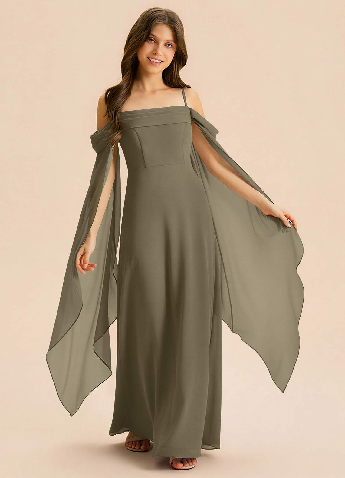 Linia A Pofałdowany Szyfon Długość podłogi Młodsza druhna Sukienka