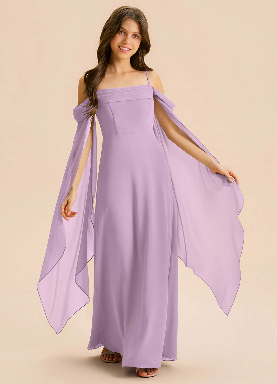 Linia A Pofałdowany Szyfon Długość podłogi Młodsza druhna Sukienka