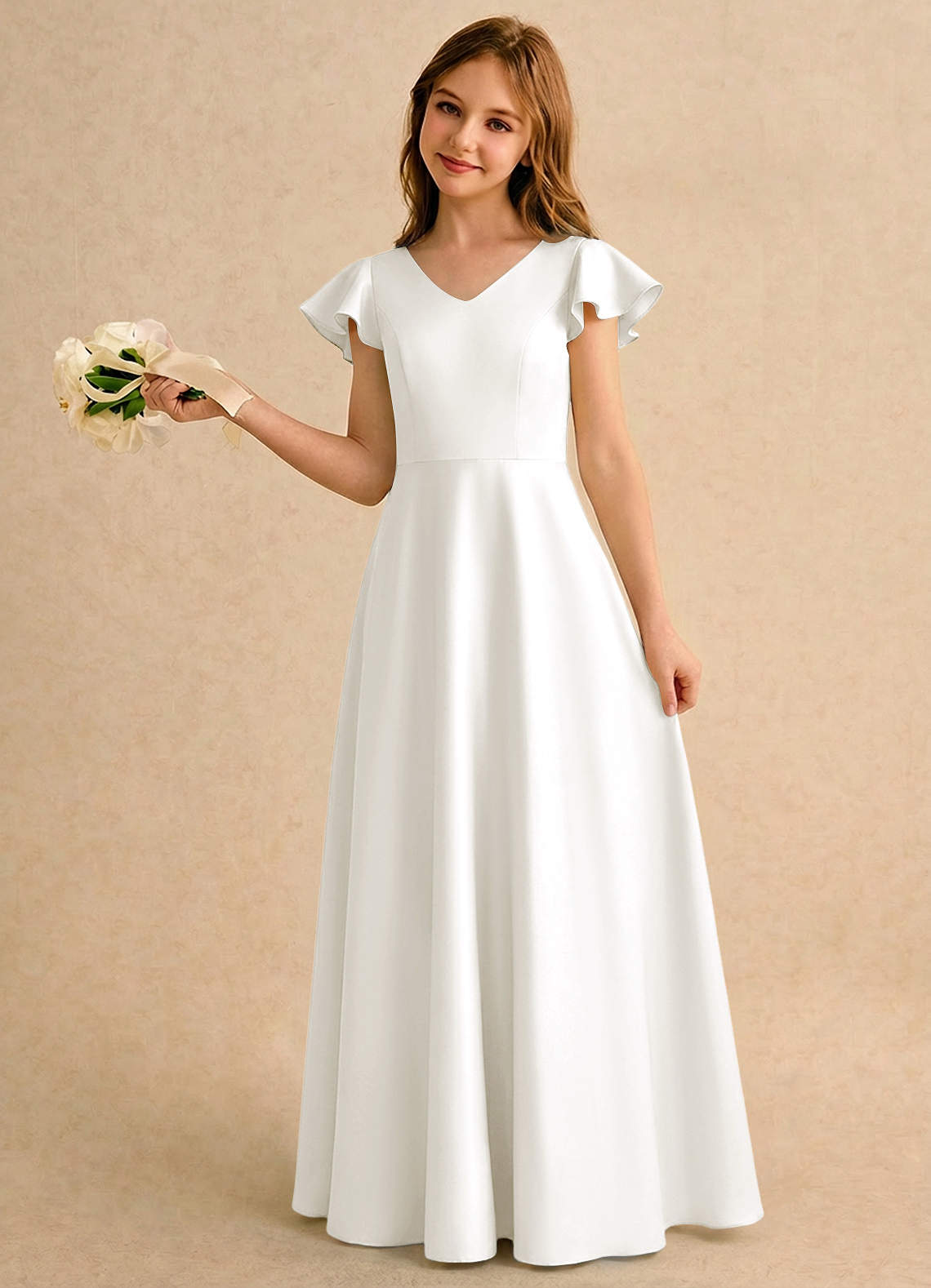 Linia A z rękawami Matowy satynowy Długość podłogi Sukienka