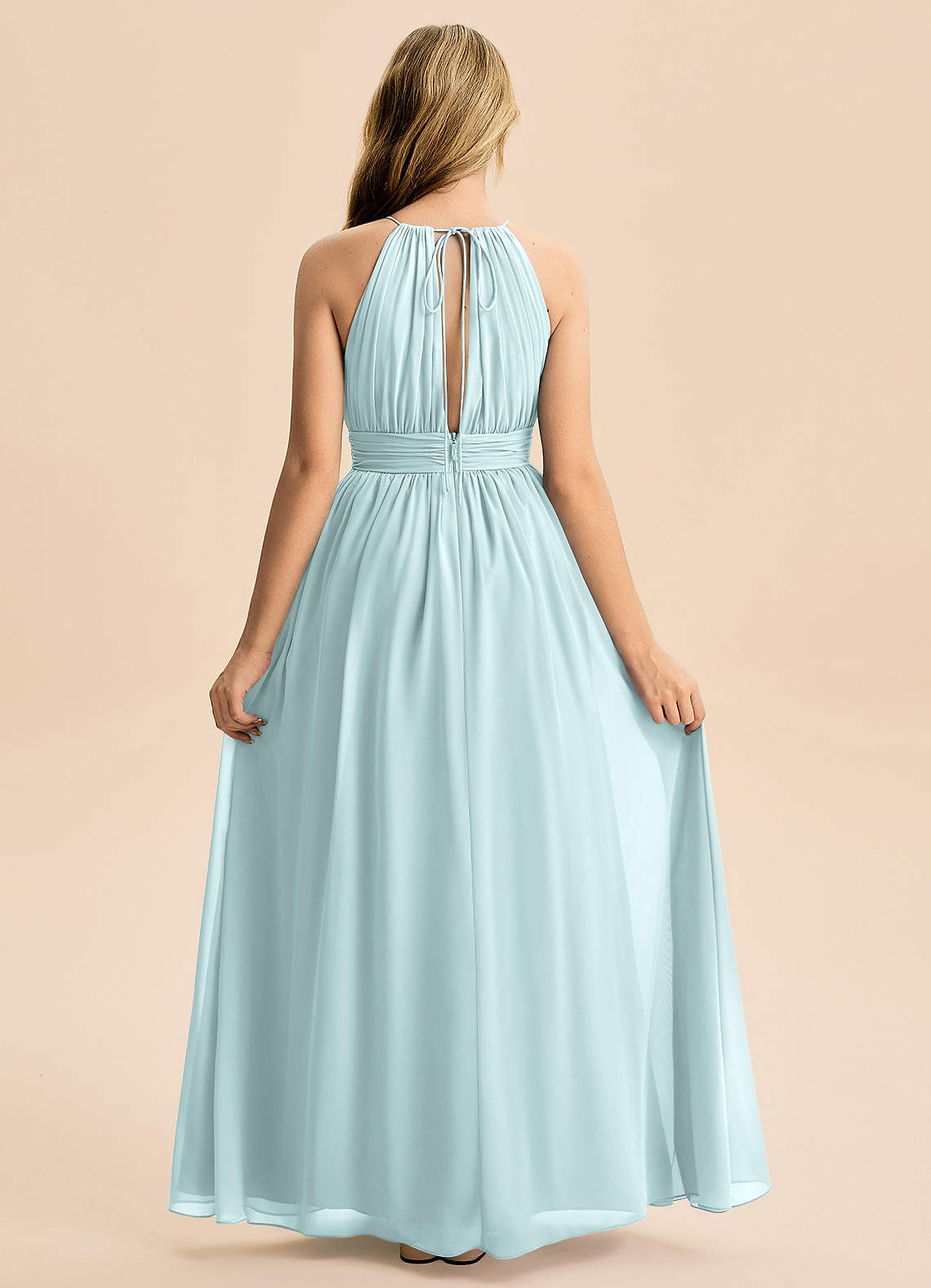 Linia A Pofałdowany Szyfon Długość podłogi Młodsza druhna Sukienka