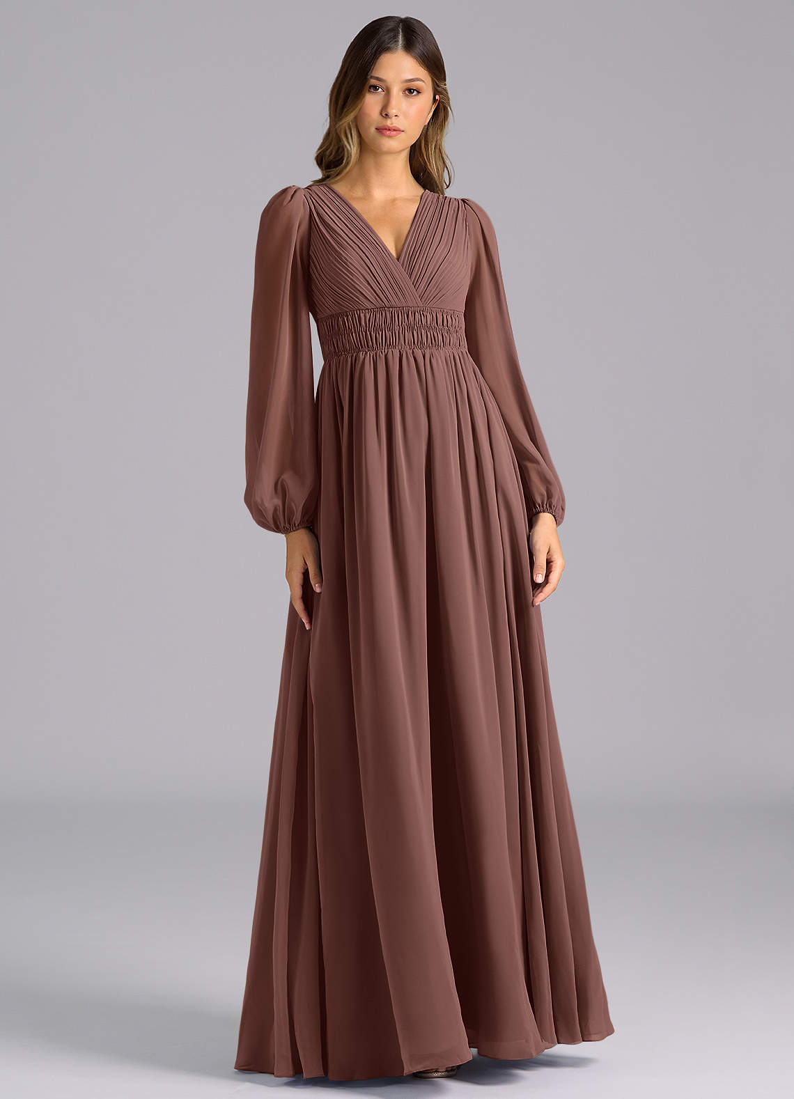 Linia A Długi rękaw Szyfon Do ziemi Sukienka