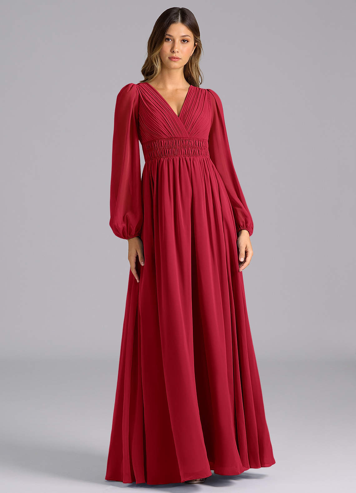 Linia A Długi rękaw Szyfon Do ziemi Sukienka