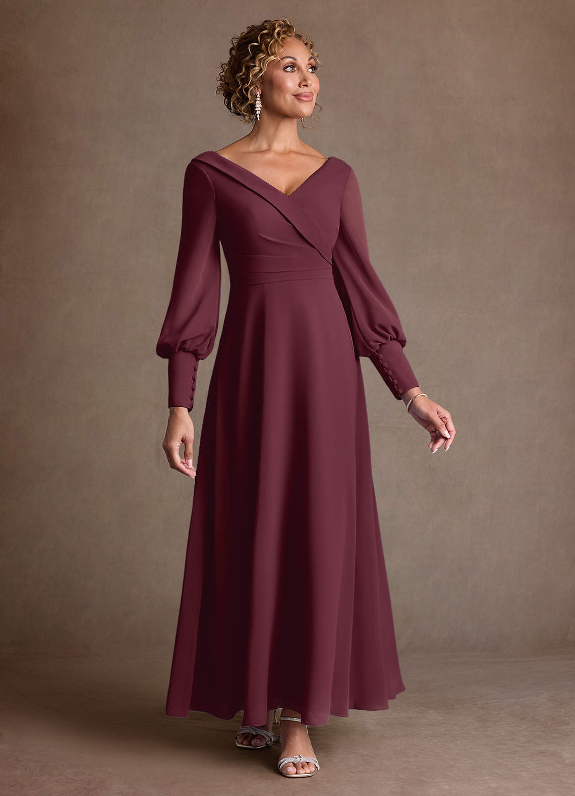Linia A Pofałdowany Szyfon Długość kostki Sukienka