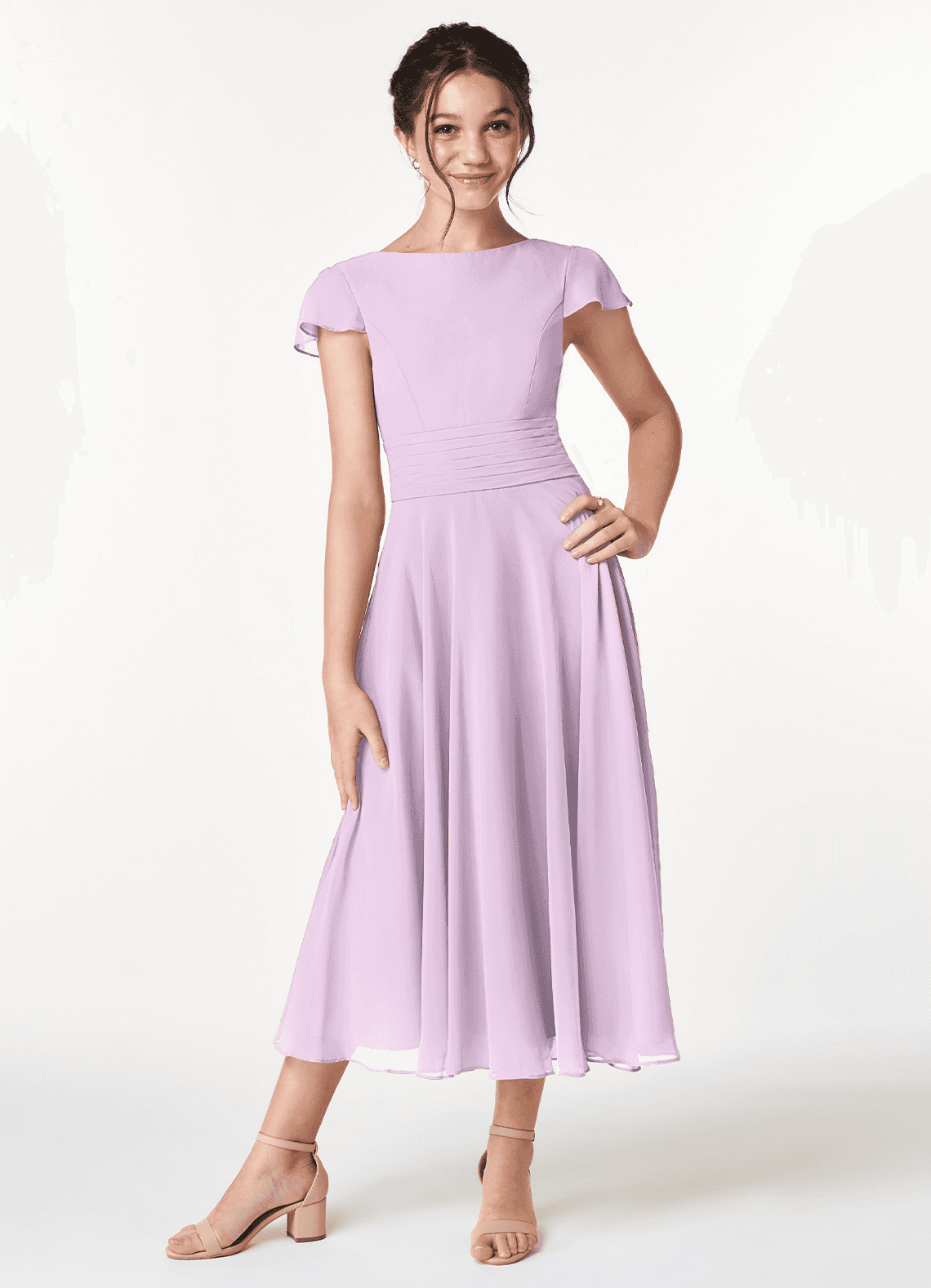 Linia A Ukłon Szyfon Długość herbaty Młodsza druhna Sukienka