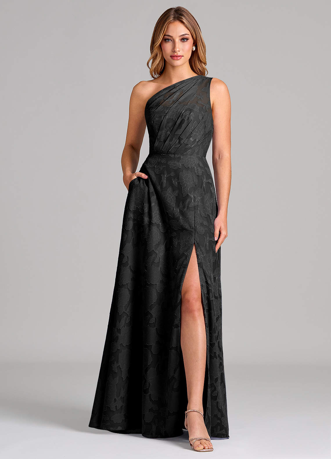 Linia A Jedno ramię Kwiatowe wypalenie Do ziemi Sukienka