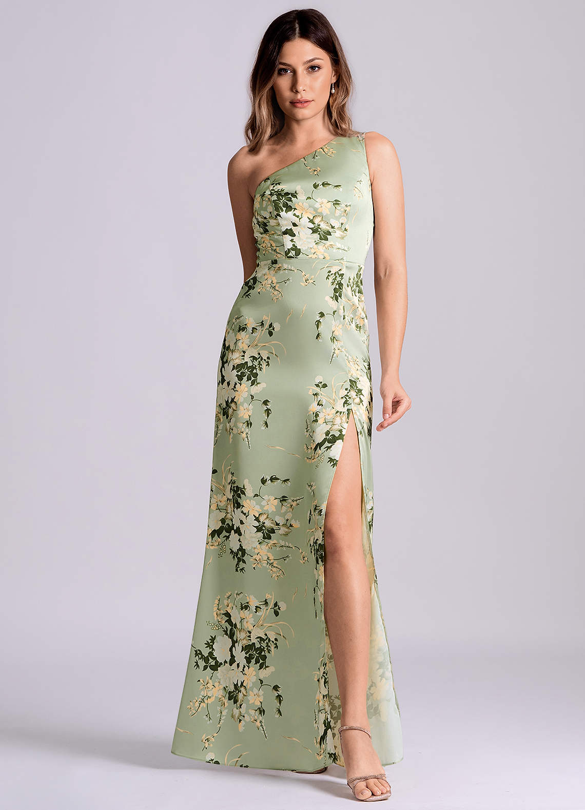 Linia A Jedno ramię Satyna elastyczna Do ziemi Sukienka