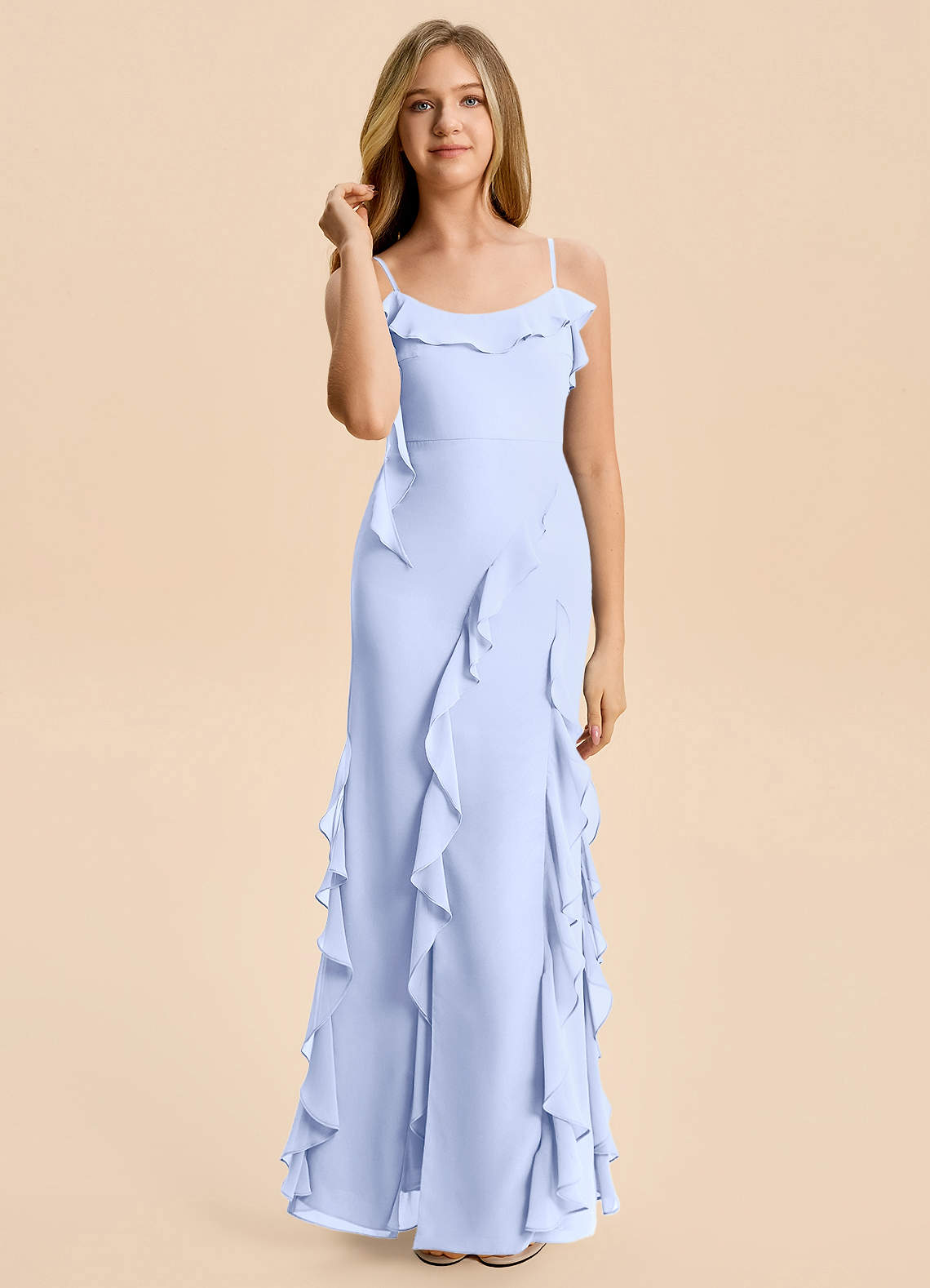 Osłona Marszczony Szyfon Długość podłogi Młodsza druhna Sukienka