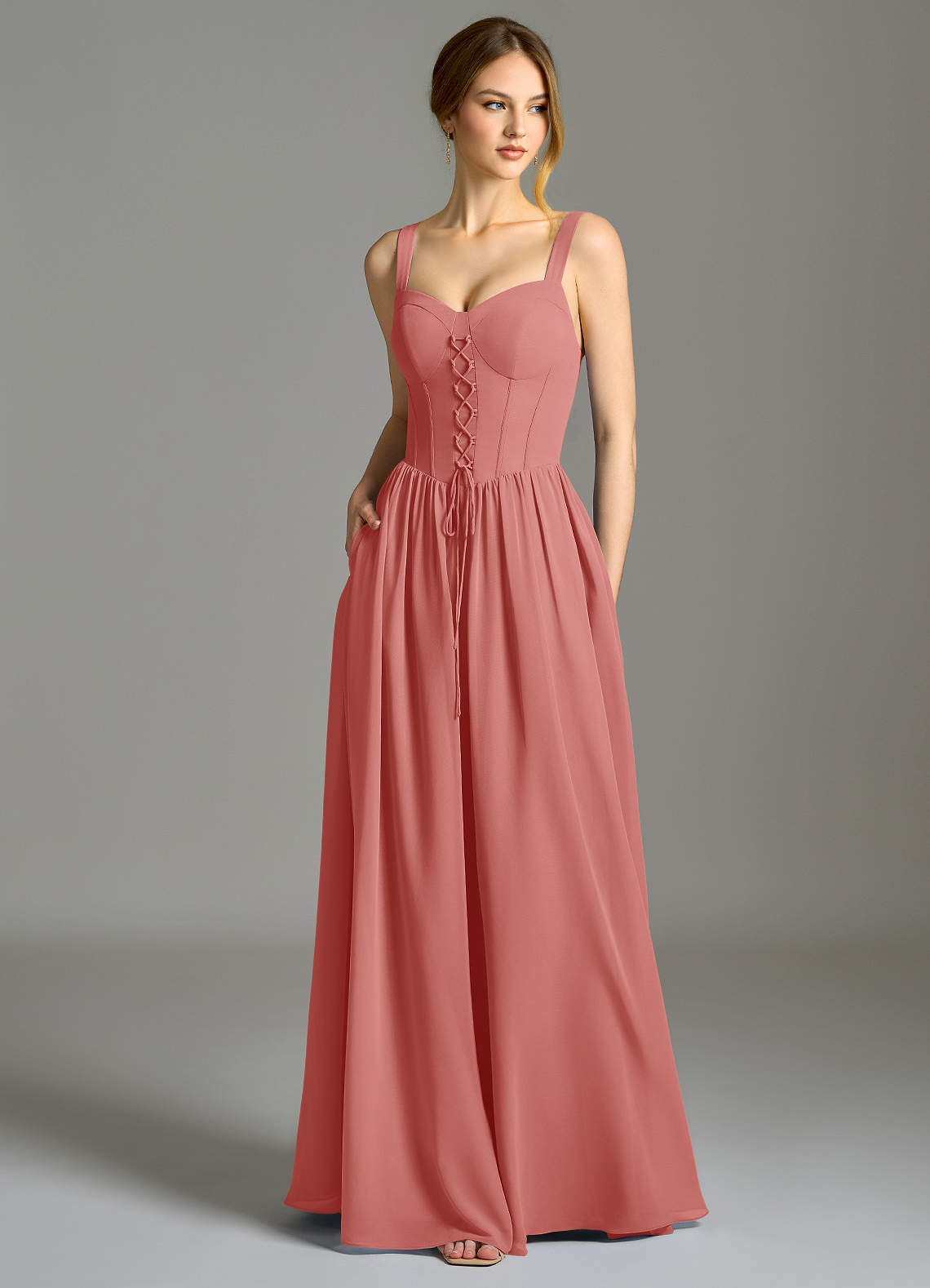 Linia A Dekolt w kształcie serca Szyfon Do ziemi Sukienka