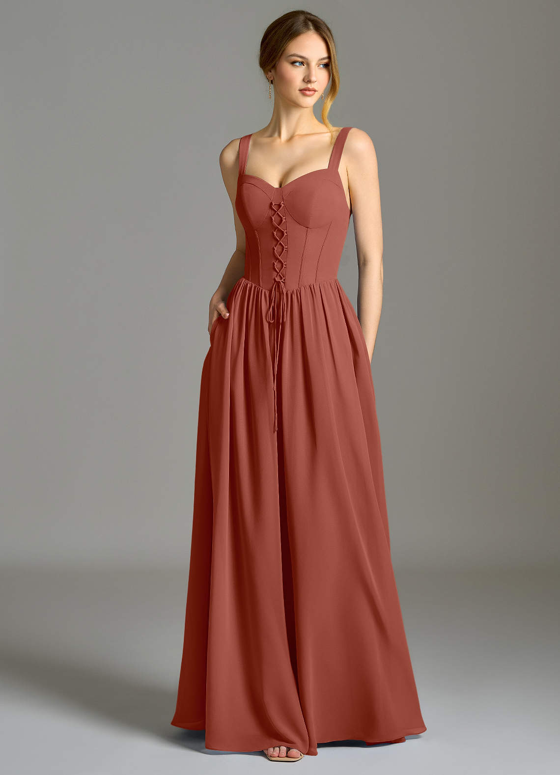 Linia A Dekolt w kształcie serca Szyfon Do ziemi Sukienka