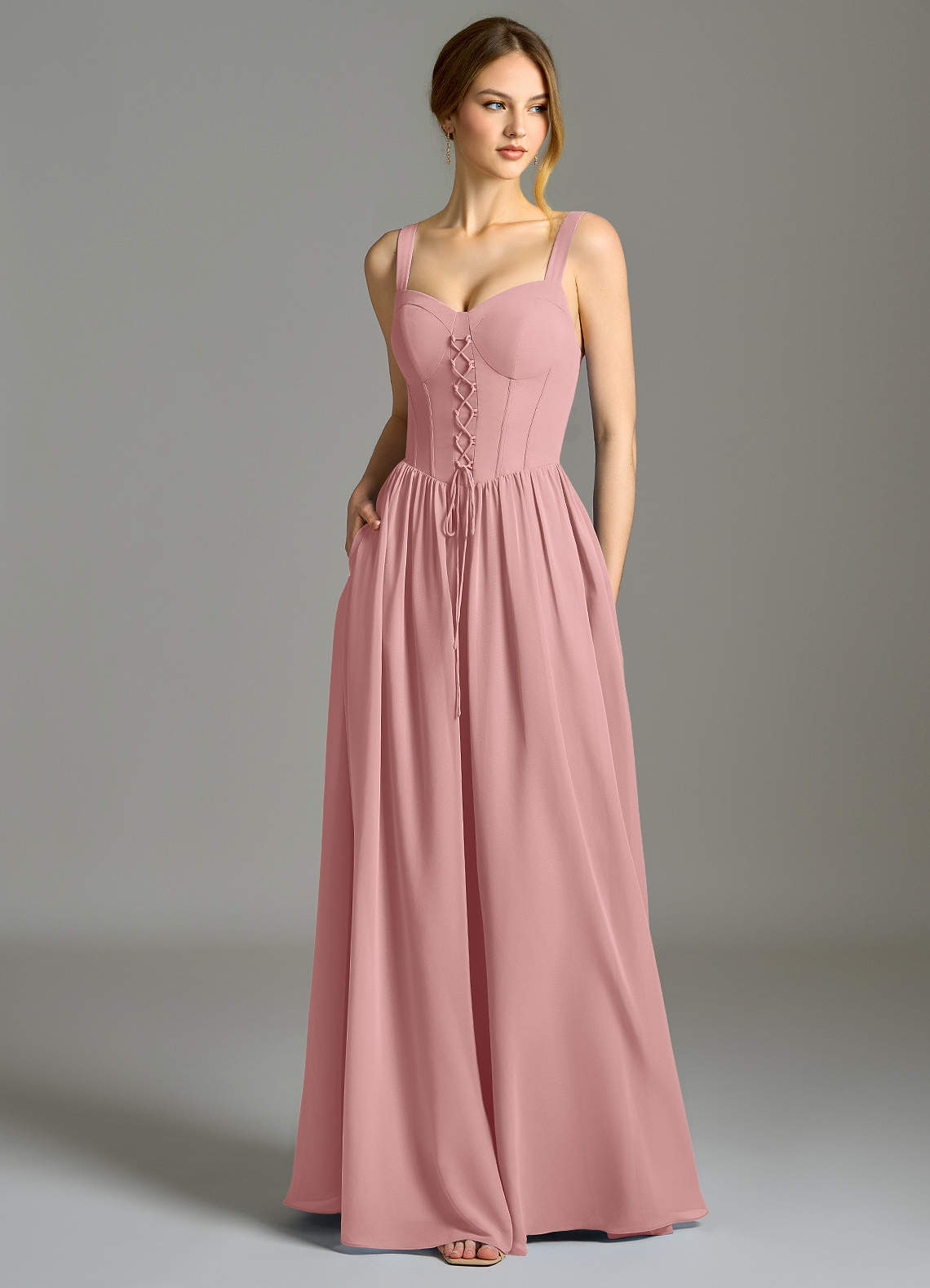 Linia A Dekolt w kształcie serca Szyfon Do ziemi Sukienka
