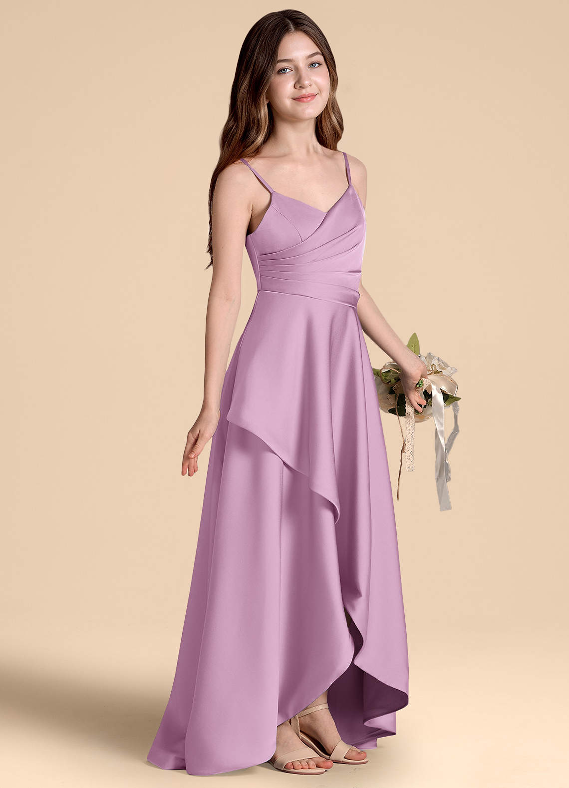 Linia A Pofałdowany Satyna elastyczna Długość podłogi Młodsza druhna Sukienka