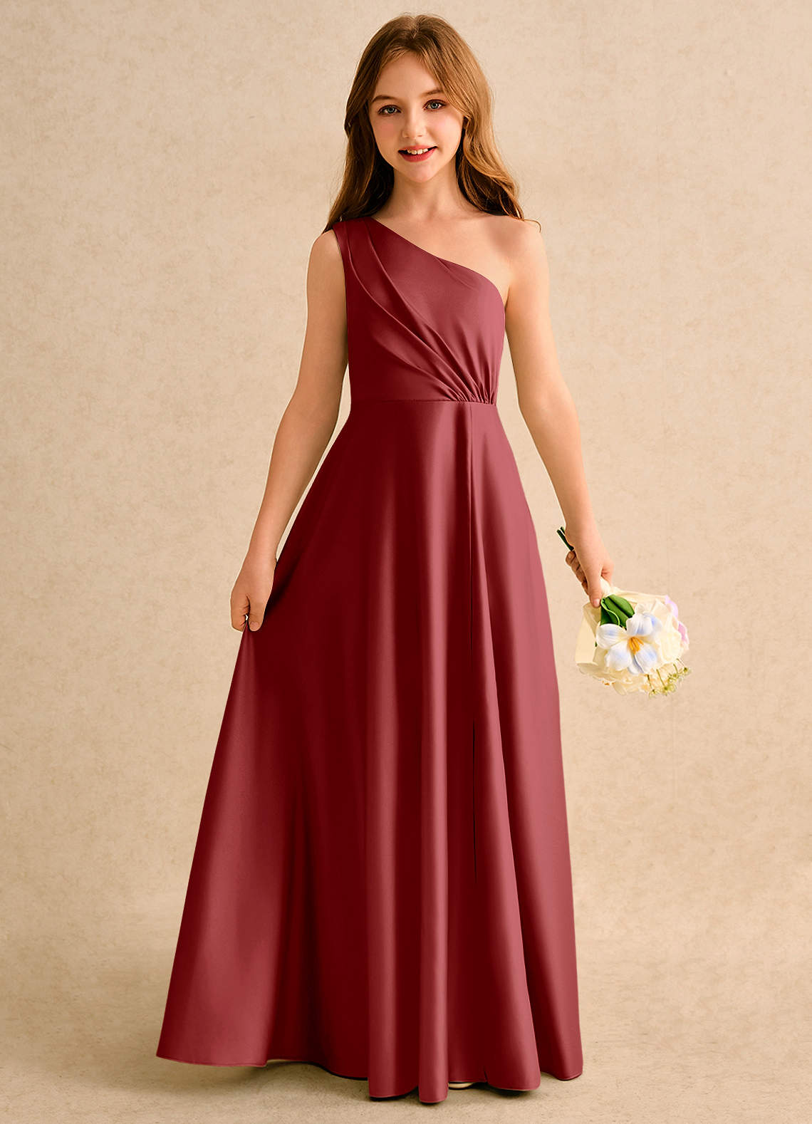 Linia A Jedno ramię Matowy satynowy Długość podłogi Sukienka