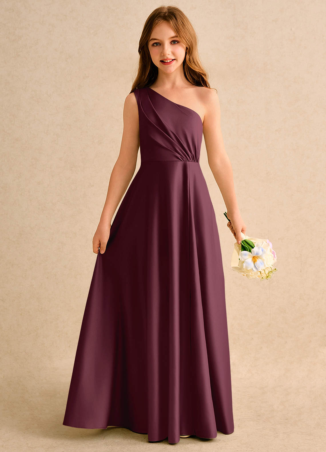 Linia A Jedno ramię Matowy satynowy Długość podłogi Sukienka