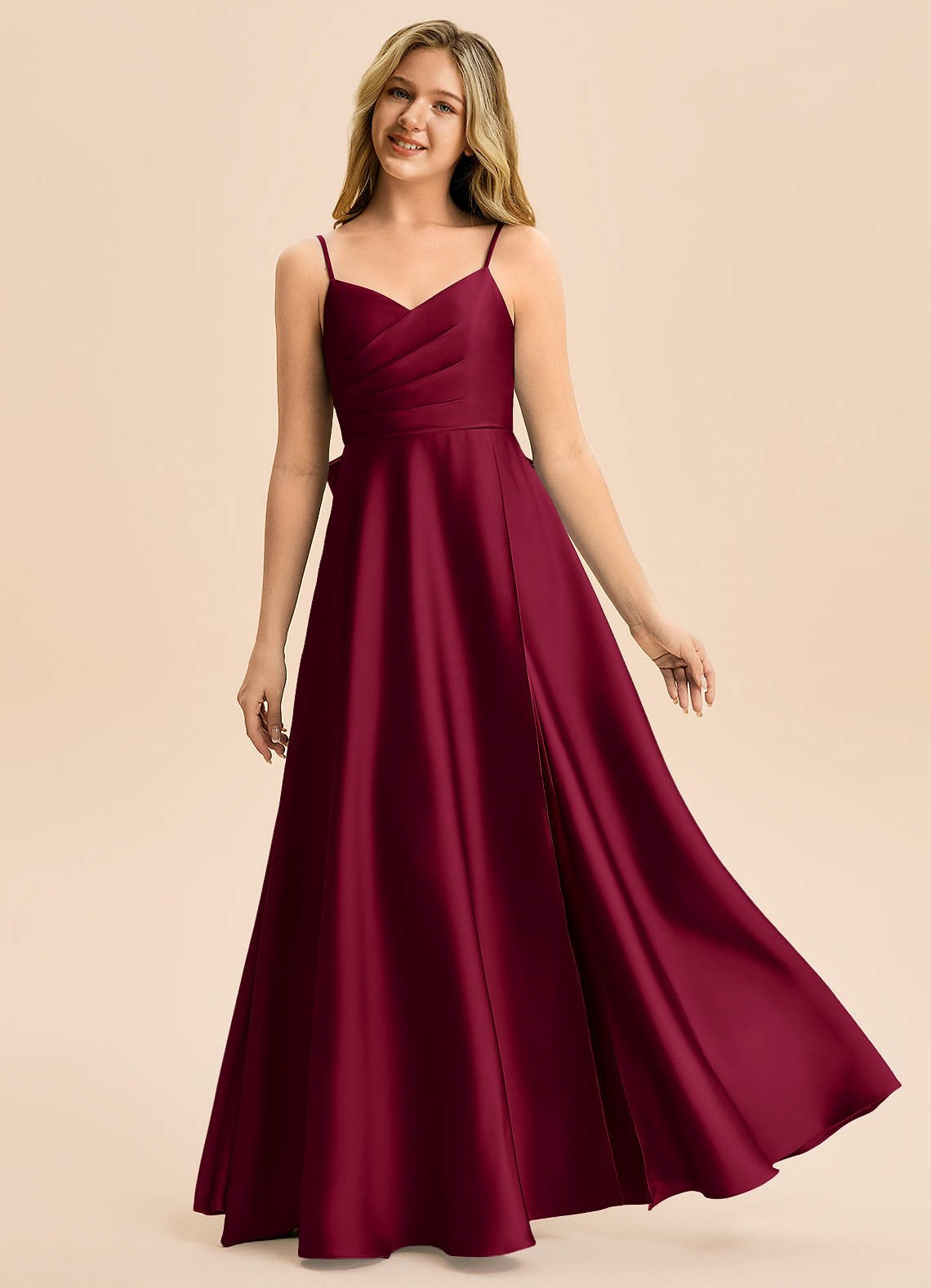 Linia A Pofałdowany Satyna elastyczna Długość podłogi Młodsza druhna Sukienka