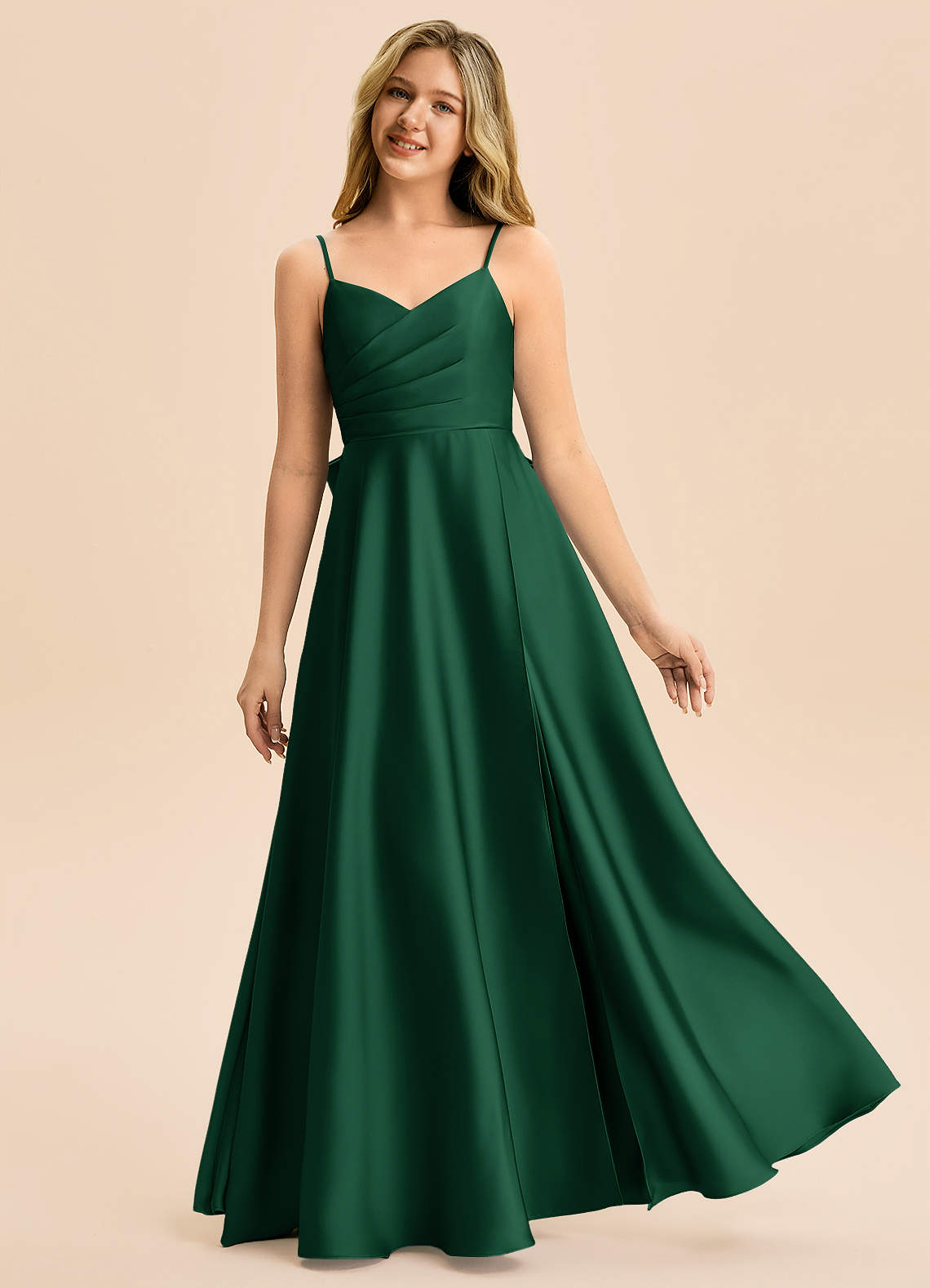 Linia A Pofałdowany Satyna elastyczna Długość podłogi Młodsza druhna Sukienka
