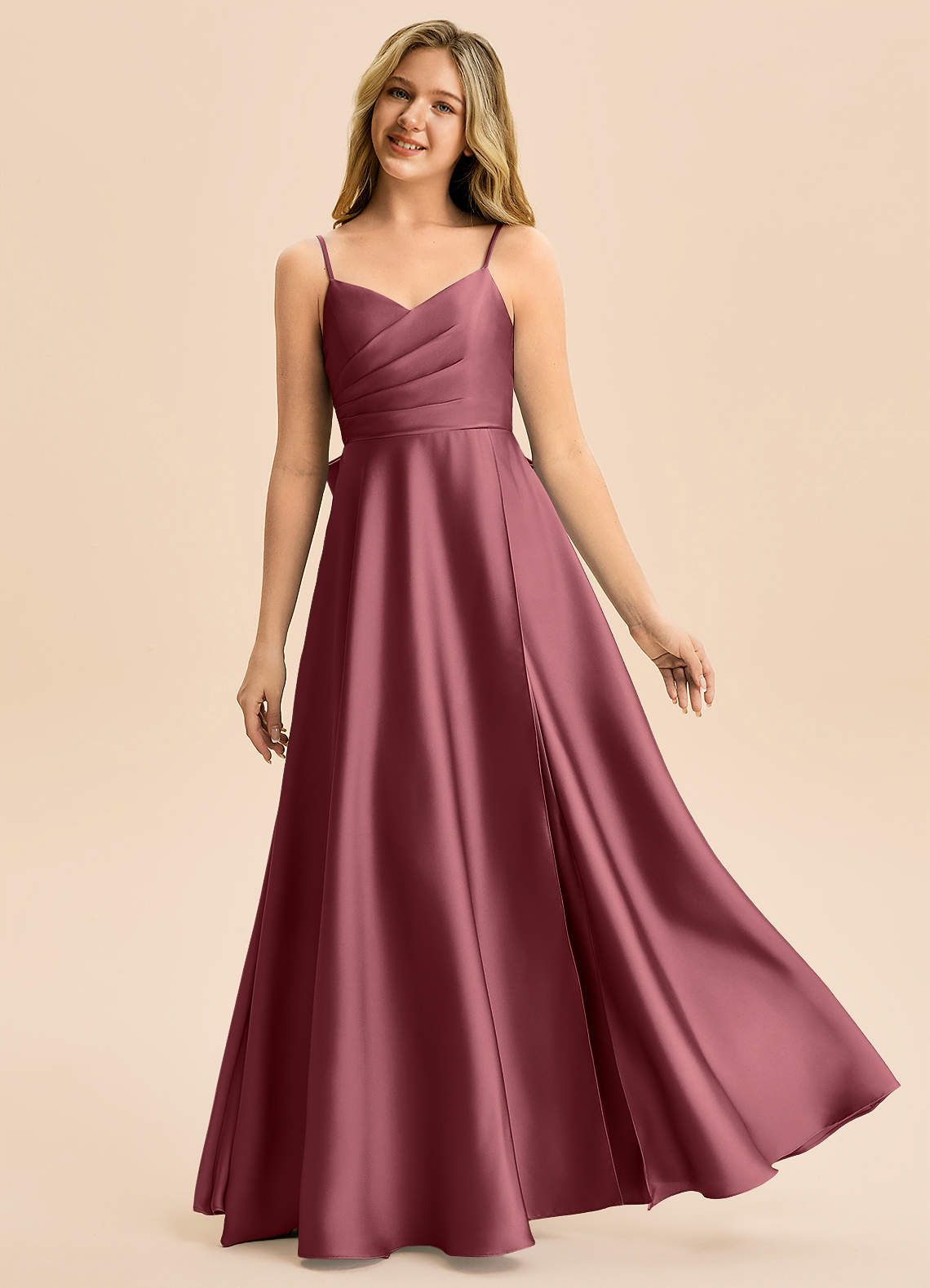Linia A Pofałdowany Satyna elastyczna Długość podłogi Młodsza druhna Sukienka