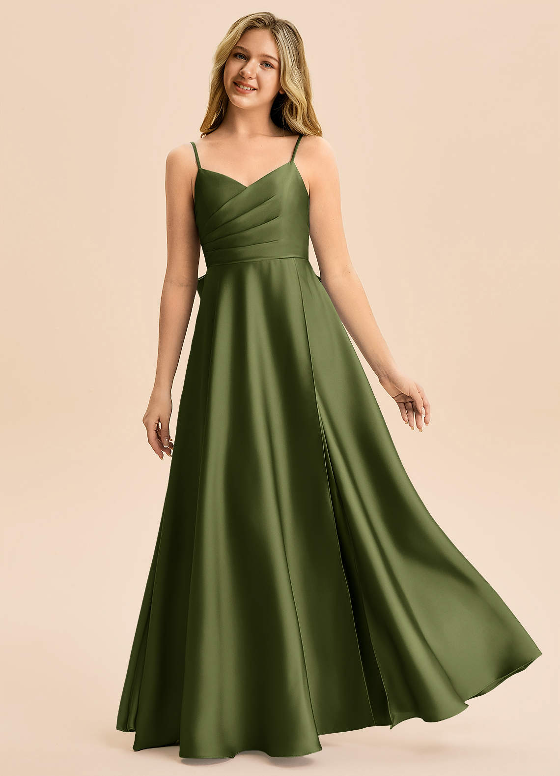 Linia A Pofałdowany Satyna elastyczna Długość podłogi Młodsza druhna Sukienka