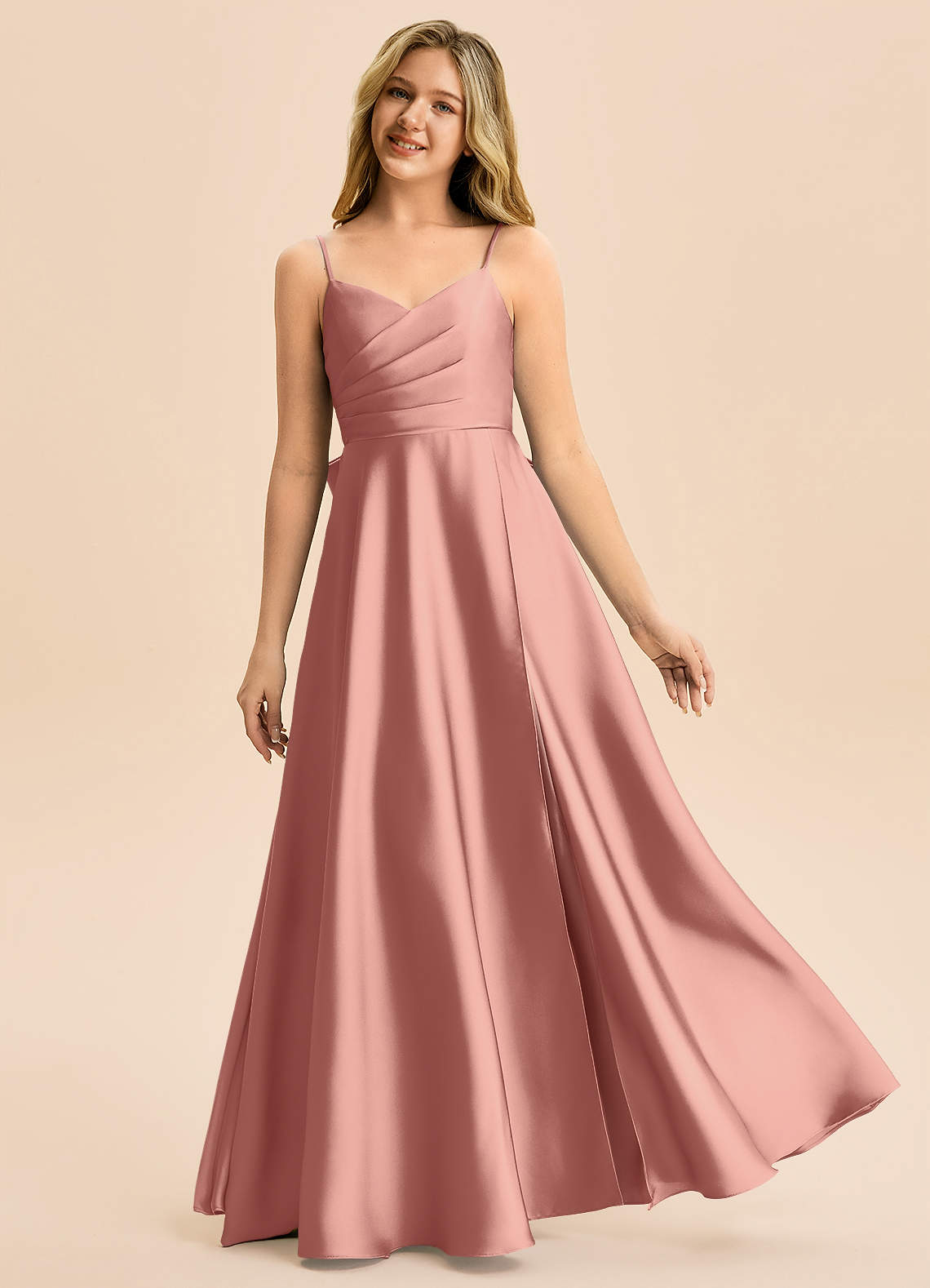 Linia A Pofałdowany Satyna elastyczna Długość podłogi Młodsza druhna Sukienka