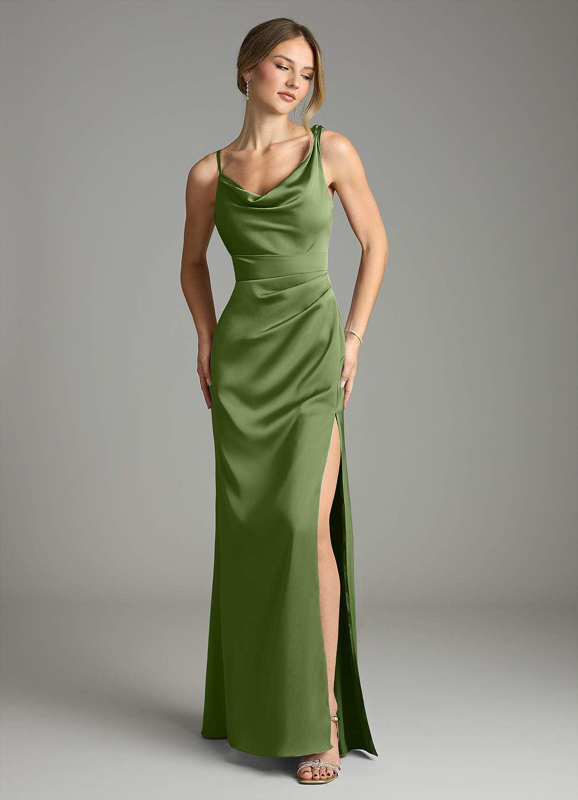 Syrena Pofałdowany Satyna elastyczna Do ziemi Sukienka