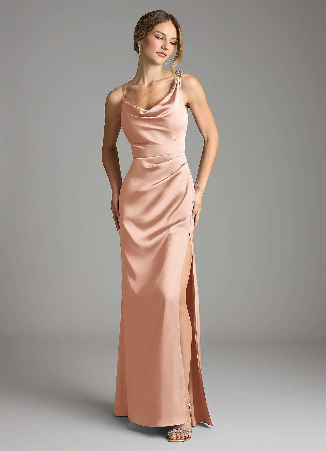 Syrena Pofałdowany Satyna elastyczna Do ziemi Sukienka