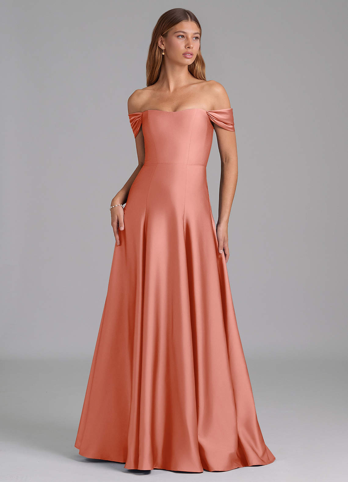 Linia A Zza ramienia Satyna elastyczna Do ziemi Sukienka