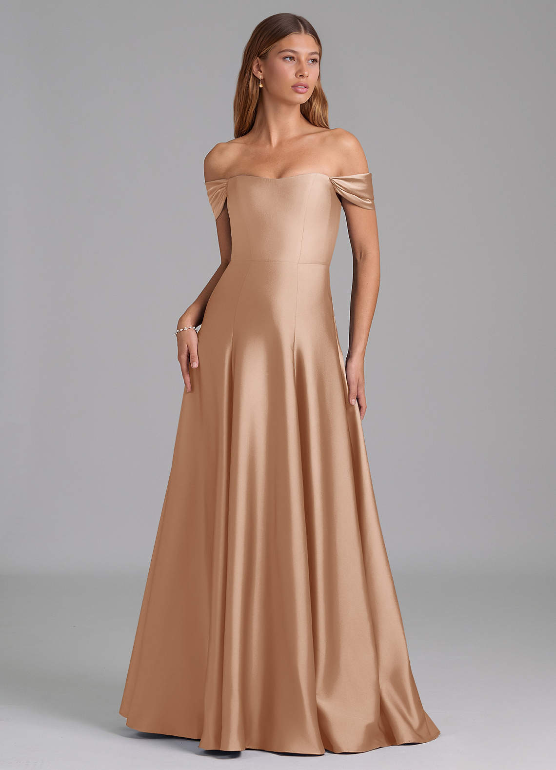 Linia A Zza ramienia Satyna elastyczna Do ziemi Sukienka