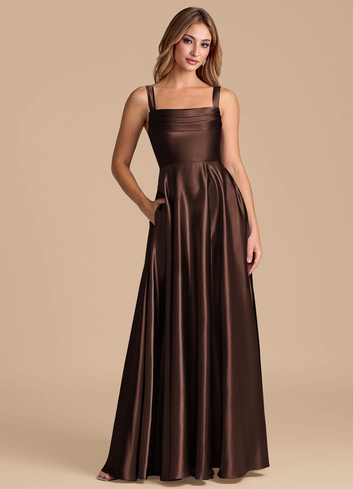 Linia A Pofałdowany Metaliczny satynowy Do ziemi Sukienka