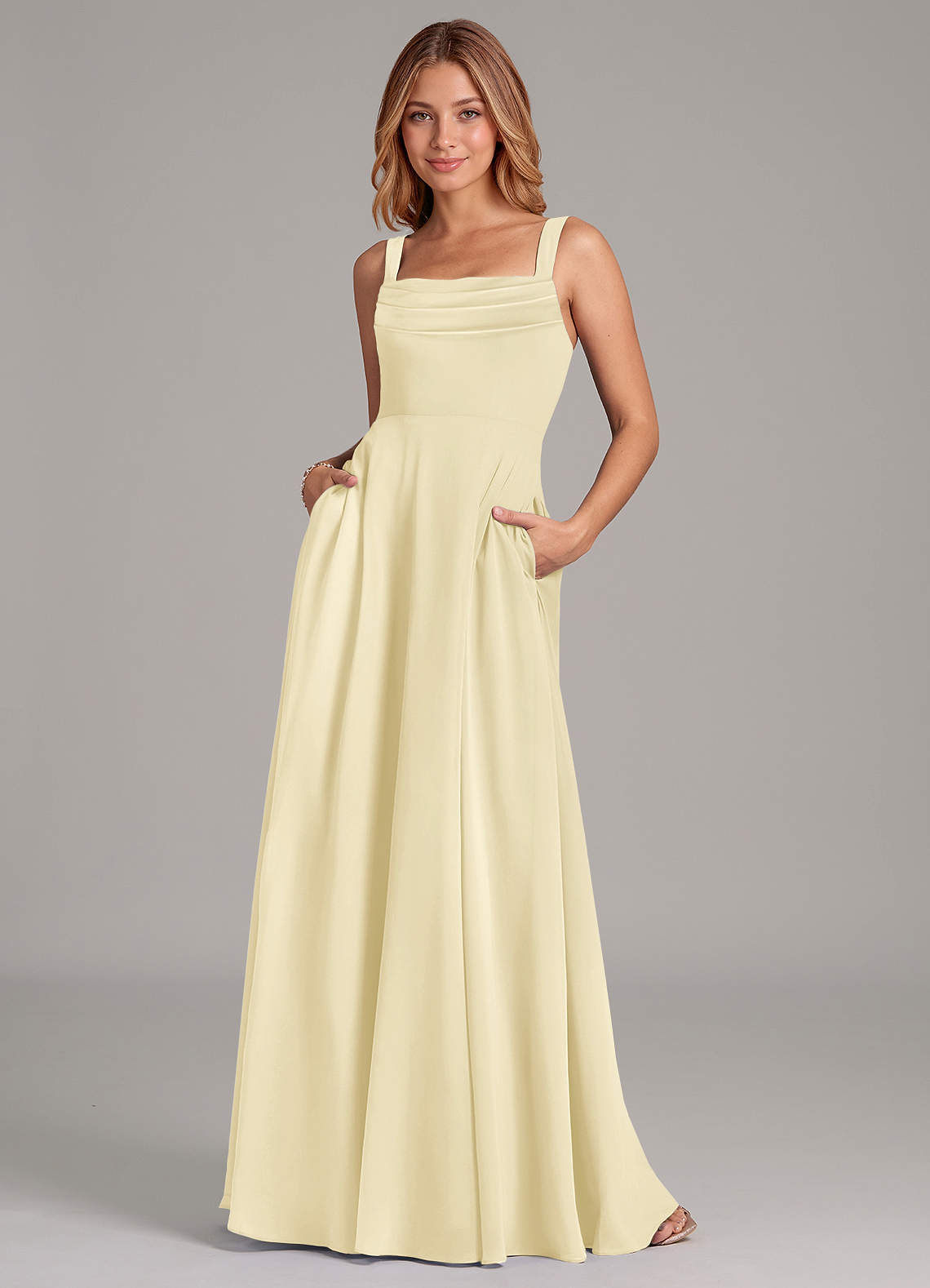 Linia A Pofałdowany Szyfon Do ziemi Sukienka