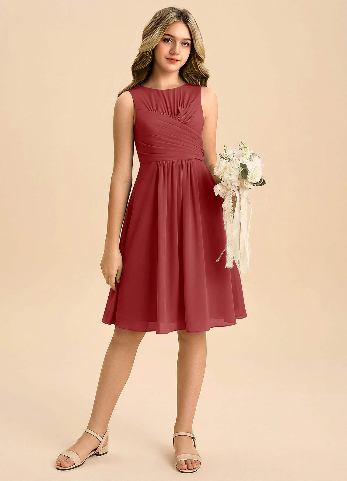 Linia A Pofałdowany Szyfon Mini Młodsza druhna Sukienka