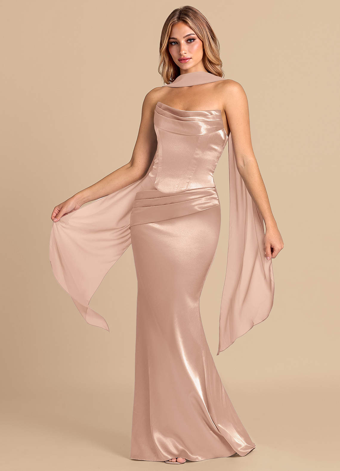 Syrena Gorset Metaliczny satynowy Do ziemi Sukienka