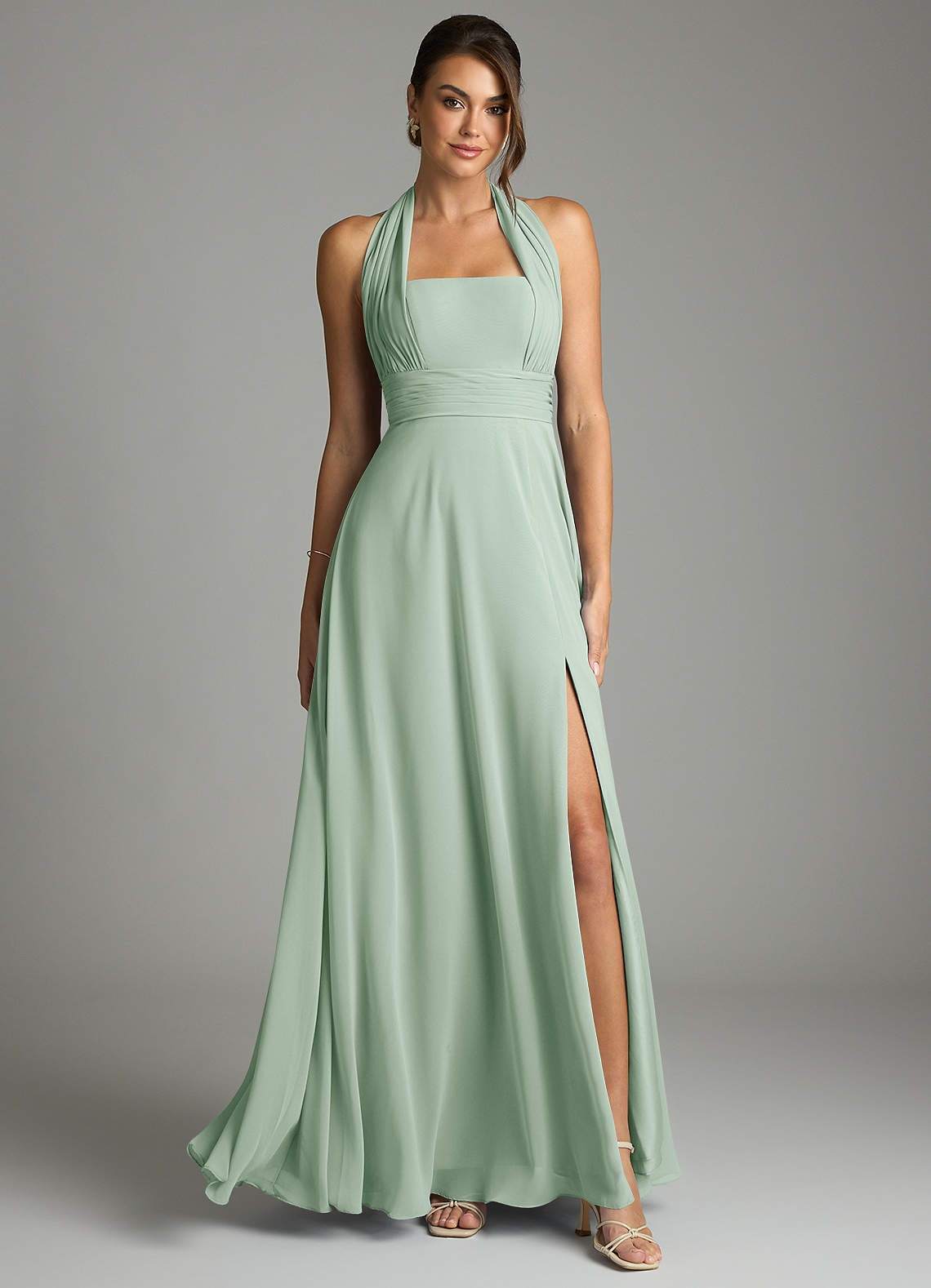 Linia A Pofałdowany Szyfon Do ziemi Sukienka