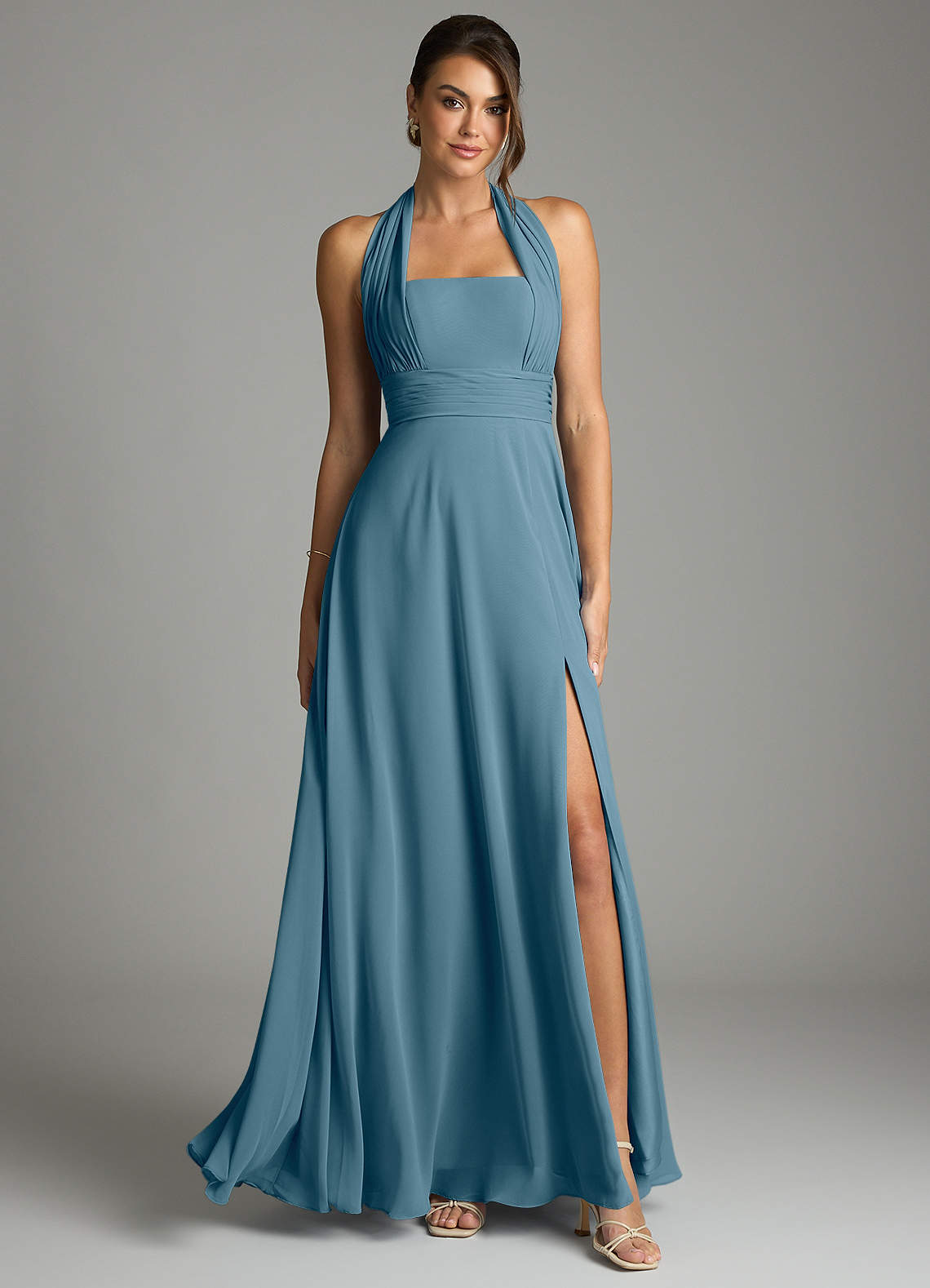 Linia A Pofałdowany Szyfon Do ziemi Sukienka