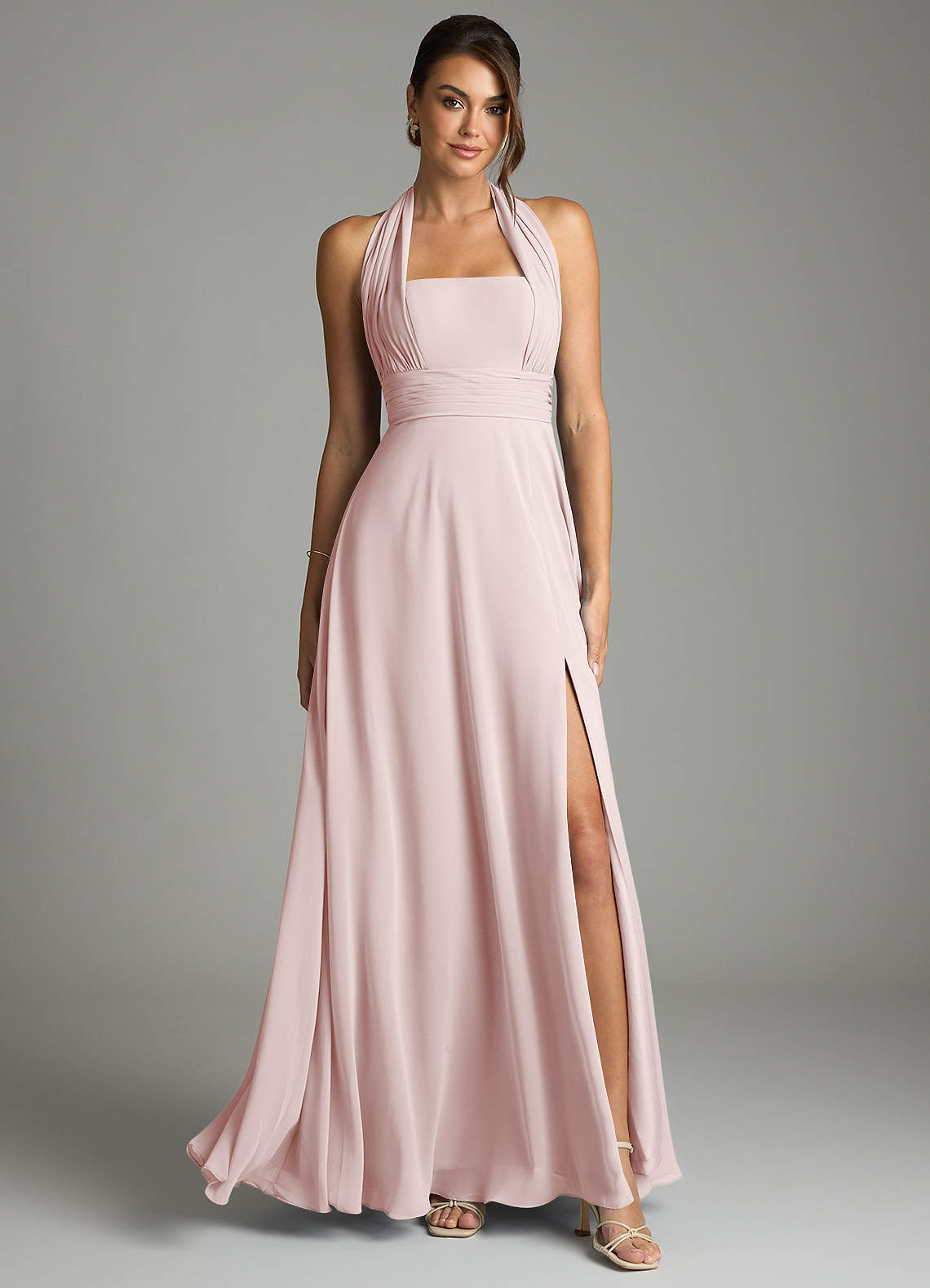 Linia A Pofałdowany Szyfon Do ziemi Sukienka