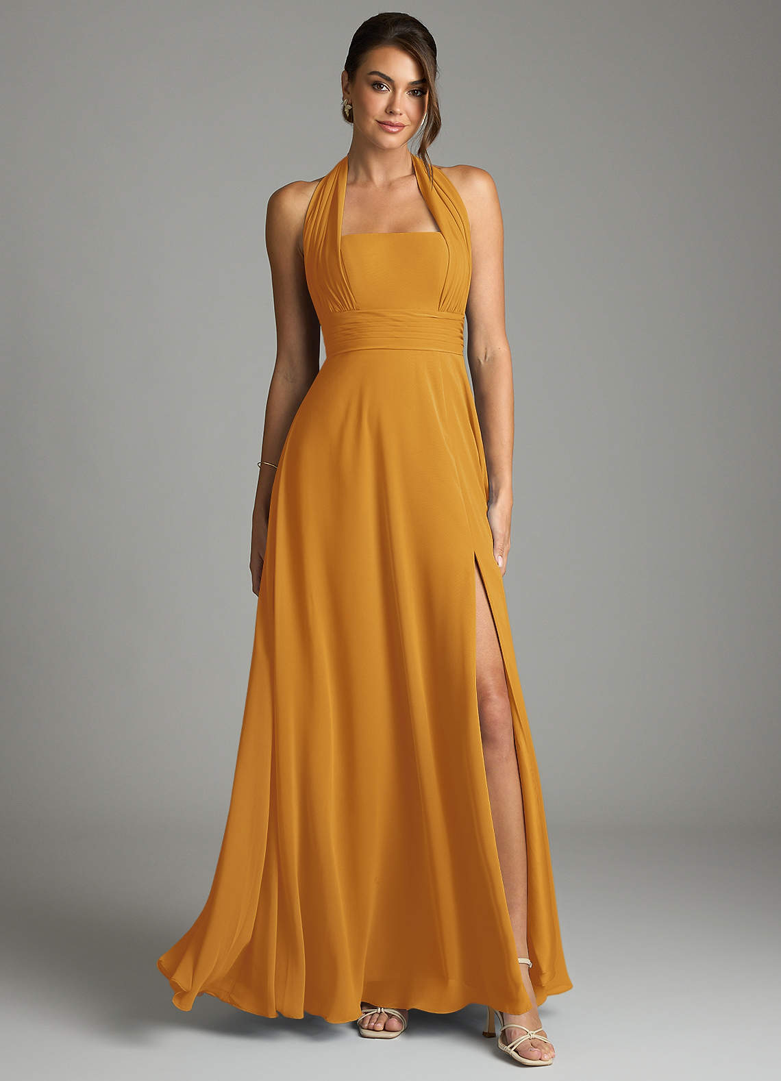 Linia A Pofałdowany Szyfon Do ziemi Sukienka