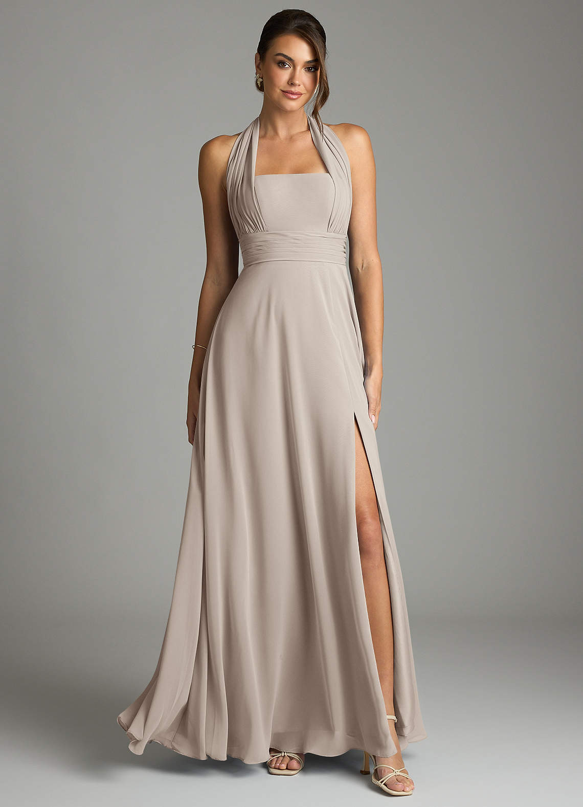 Linia A Pofałdowany Szyfon Do ziemi Sukienka
