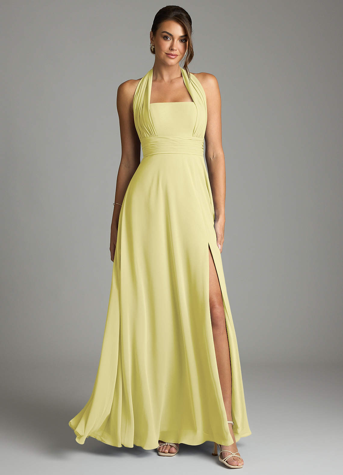 Linia A Pofałdowany Szyfon Do ziemi Sukienka