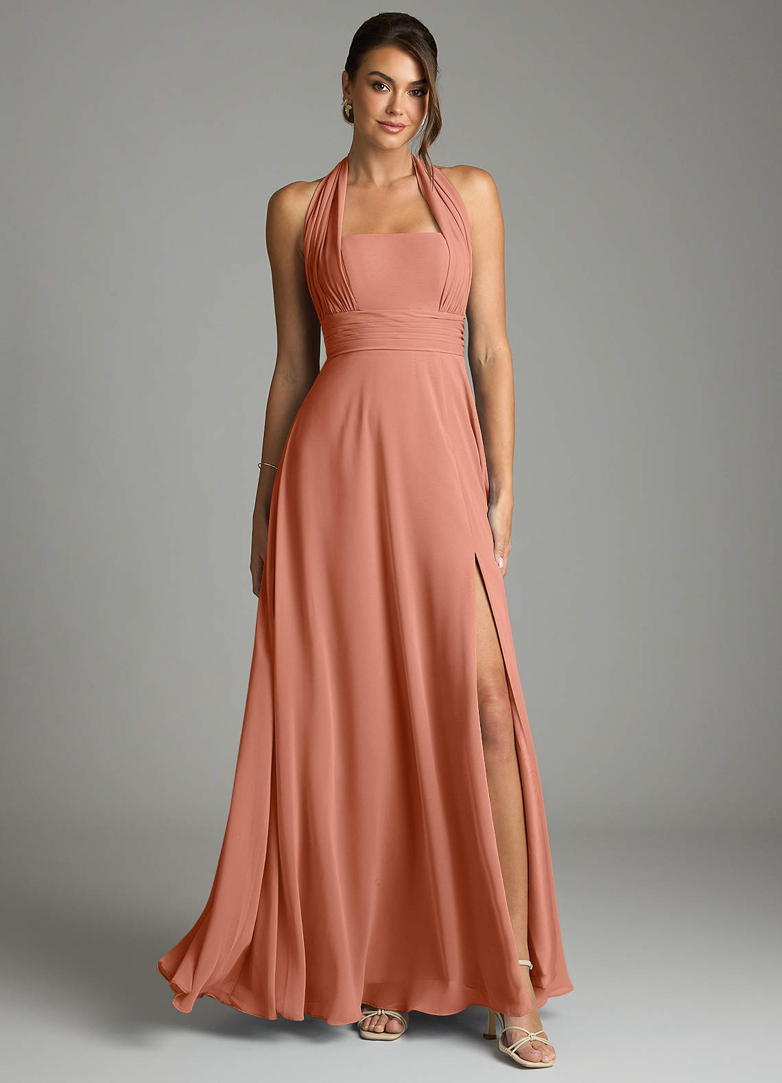 Linia A Pofałdowany Szyfon Do ziemi Sukienka